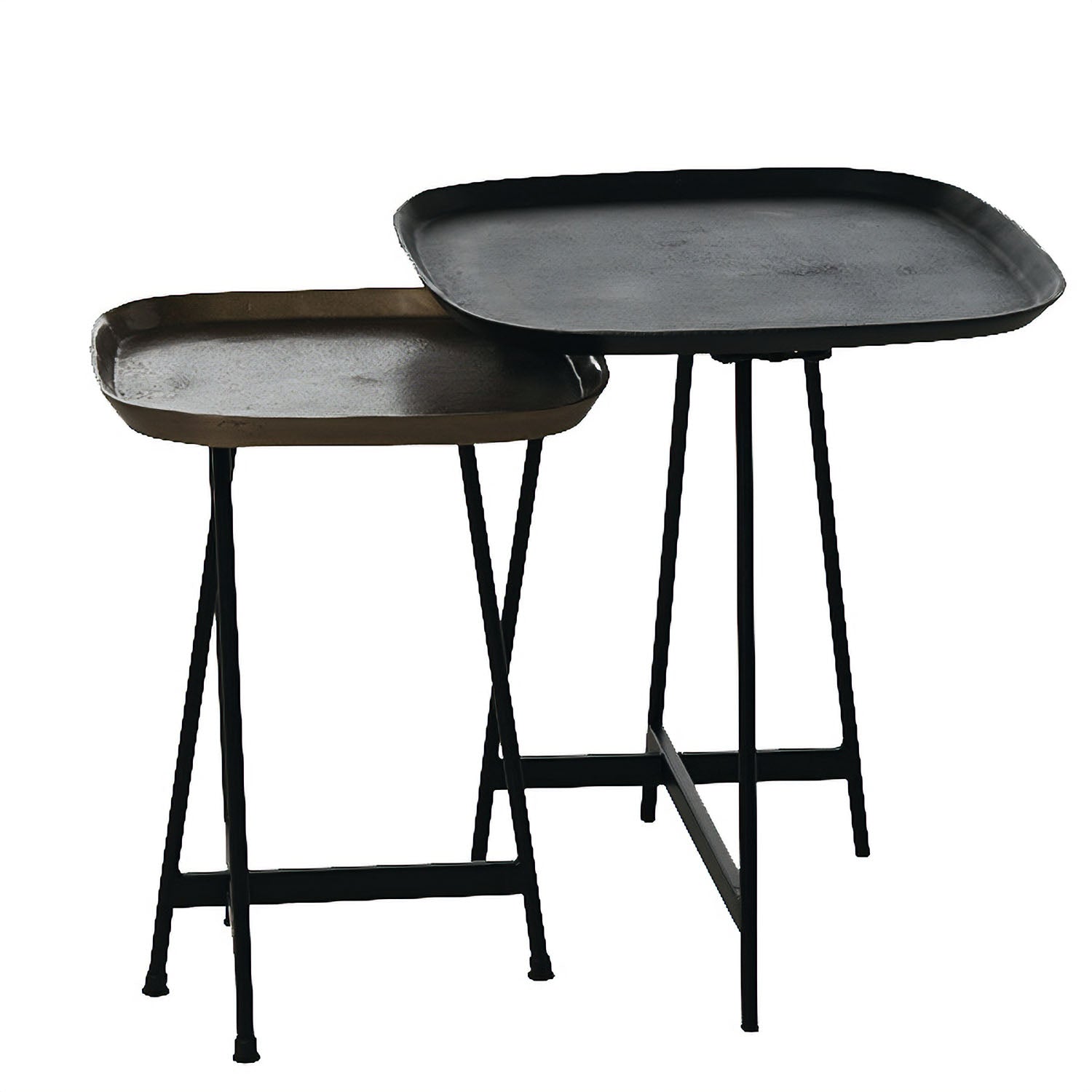 Set of 2 coffee tables with a minimalist style. The tables are made with aluminum tops. The design of the iron legs is a detail that makes the set unique and elegant.