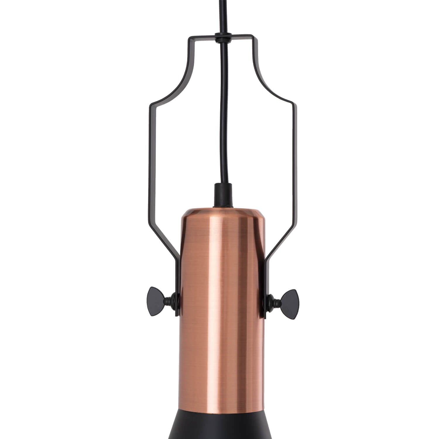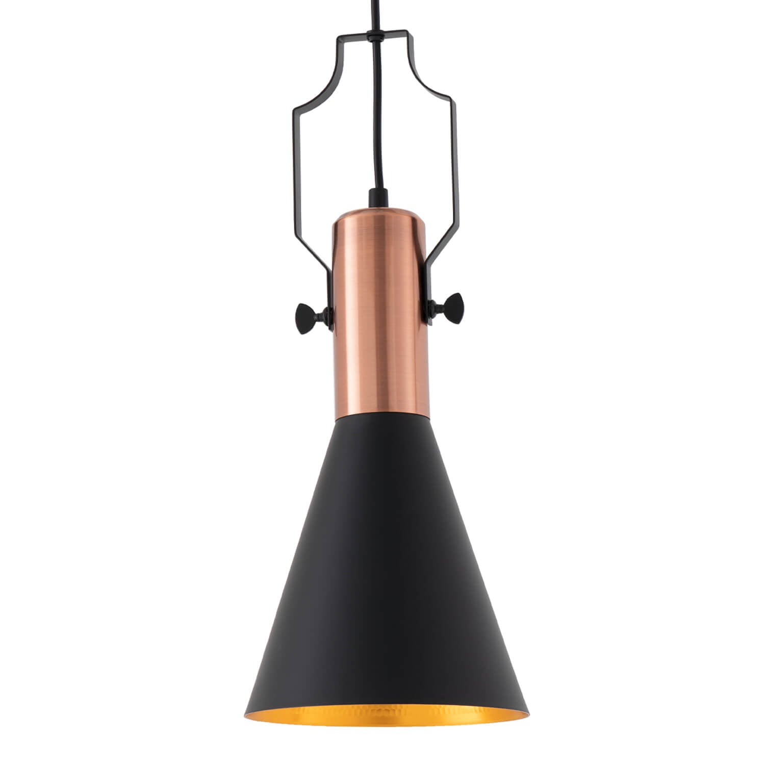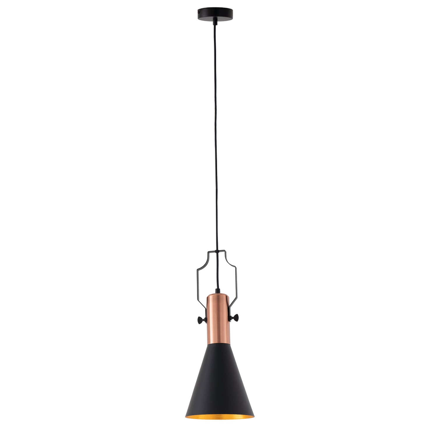 Ceiling lamp in black metal with gold-colored interior, 92 cm ceiling cable and round clamping plate Ø 10 cm