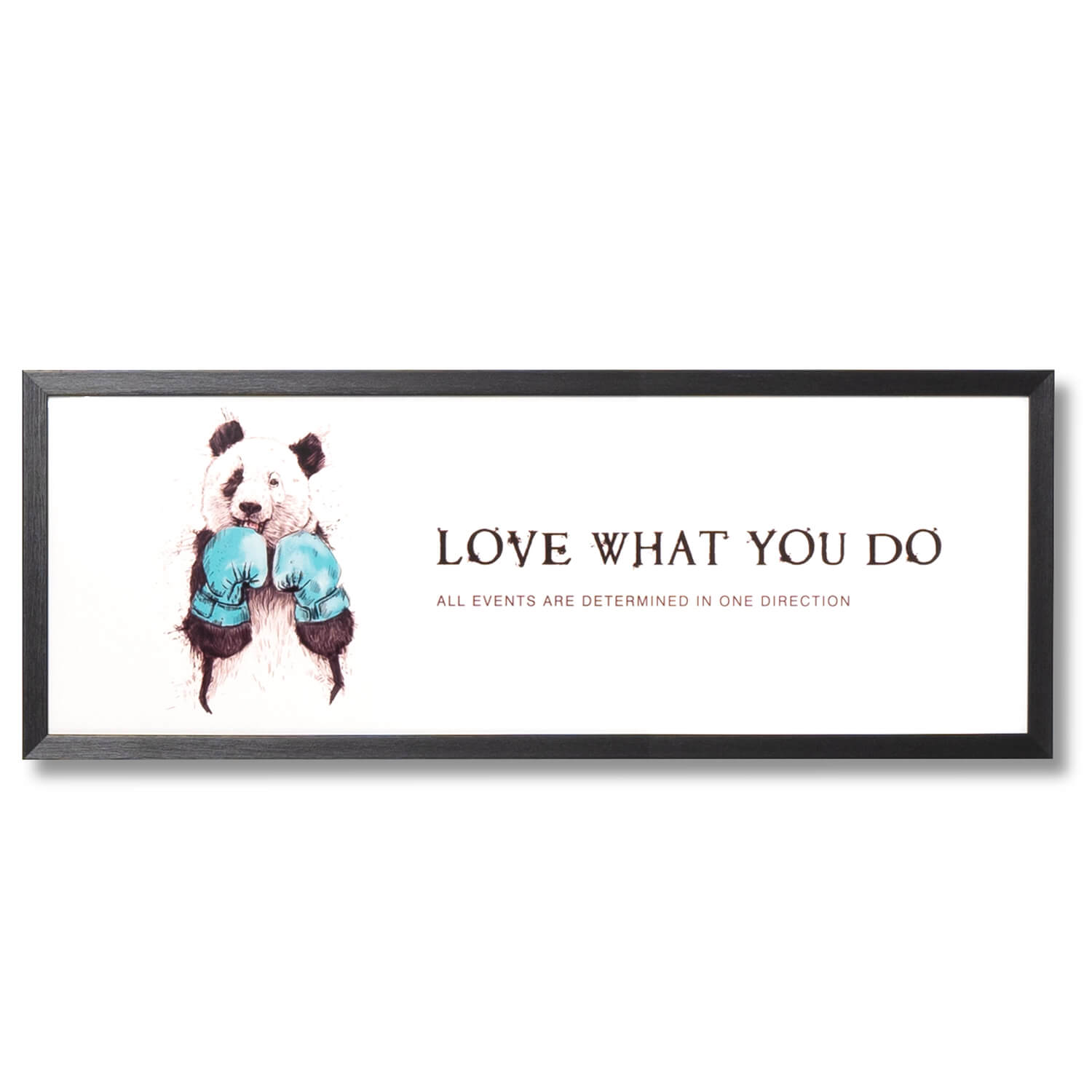 The BEAR part features an illustration of a panda wearing boxing gloves along with the phrase "Love what you do".