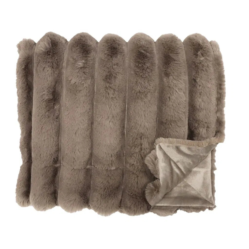 Increase the coziness in your home with the luxurious Brooklyn throw. The throw has an extra soft faux fur in a pattern of wide stripes on the front and a lovely micro mink on the back.