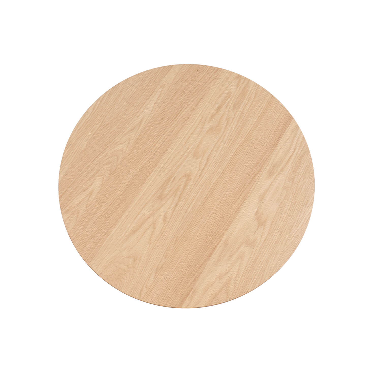 Round coffee table ø 75 cm in oak with natural veneer and black metal legs.