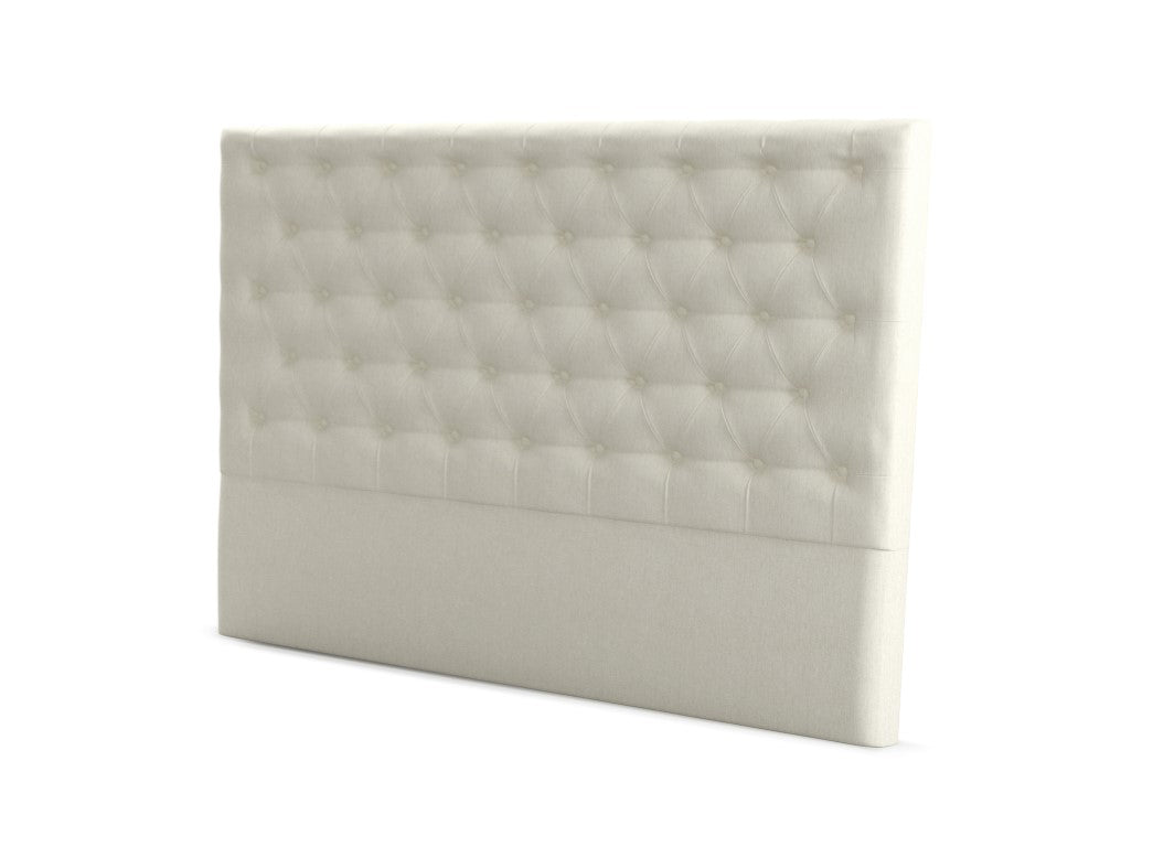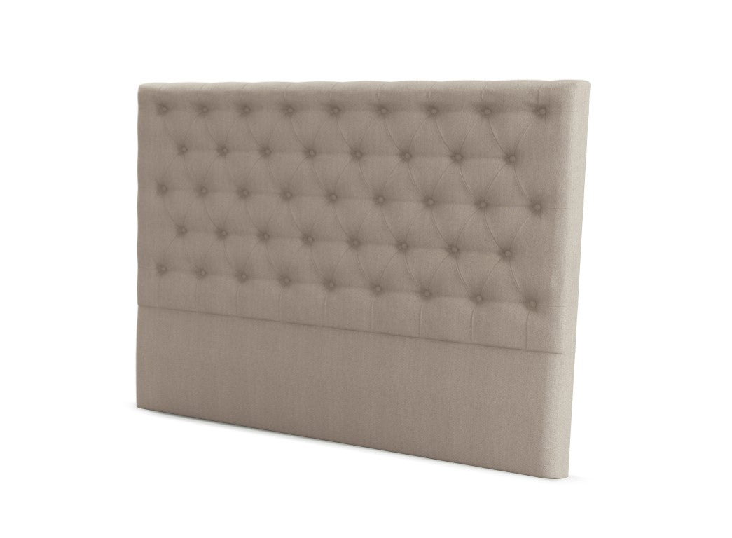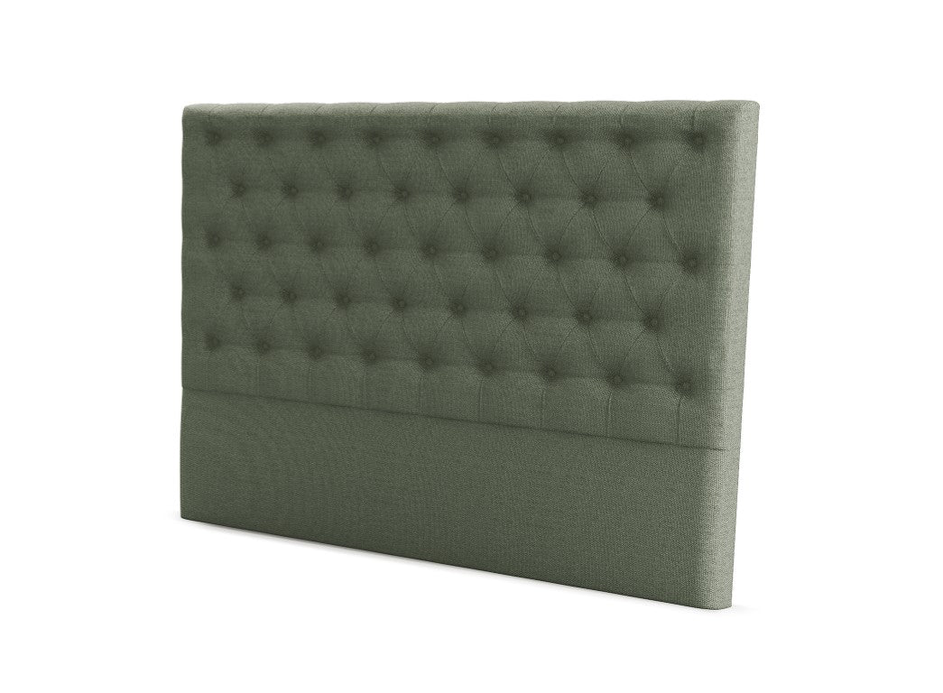 Jensen Diva is a new fabric-covered headboard with a generous number of deep piqued buttons.