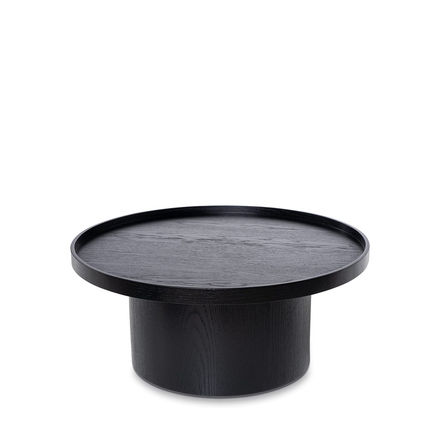 Its smooth and flat surface highlights the natural texture of the wood and adds a touch of sophistication. The minimalist design is complemented by a cylindrical base that provides stability and a slim profile.