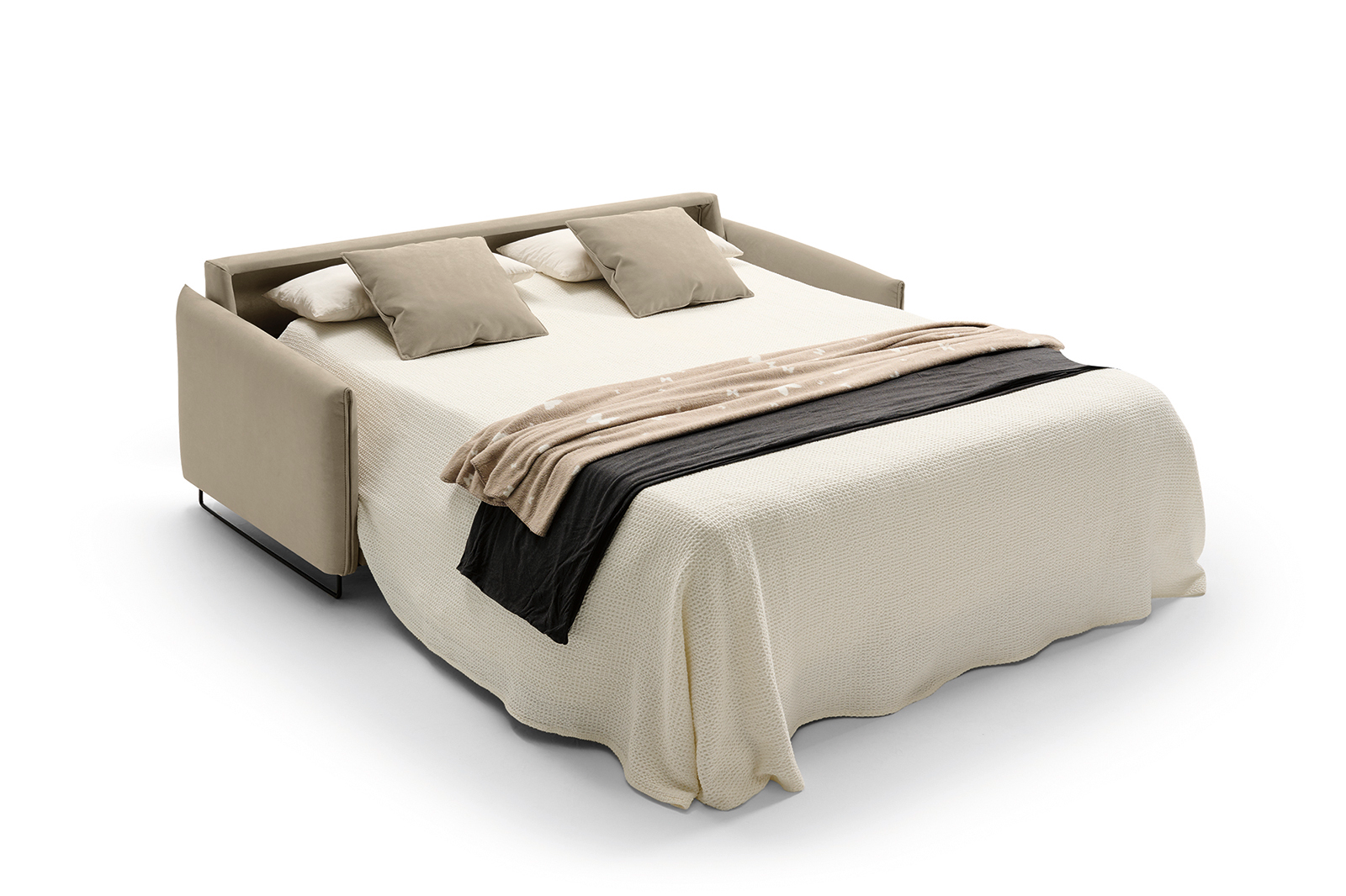 Det bästa är att du får en riktig säng på köpet. Den inbyggda madrassen är hela 18 cm tjock, vilket betyder att du sover riktigt gott. Överdragen på kuddar och sitsar är avtagbara, så du slipper oroa dig för spill.