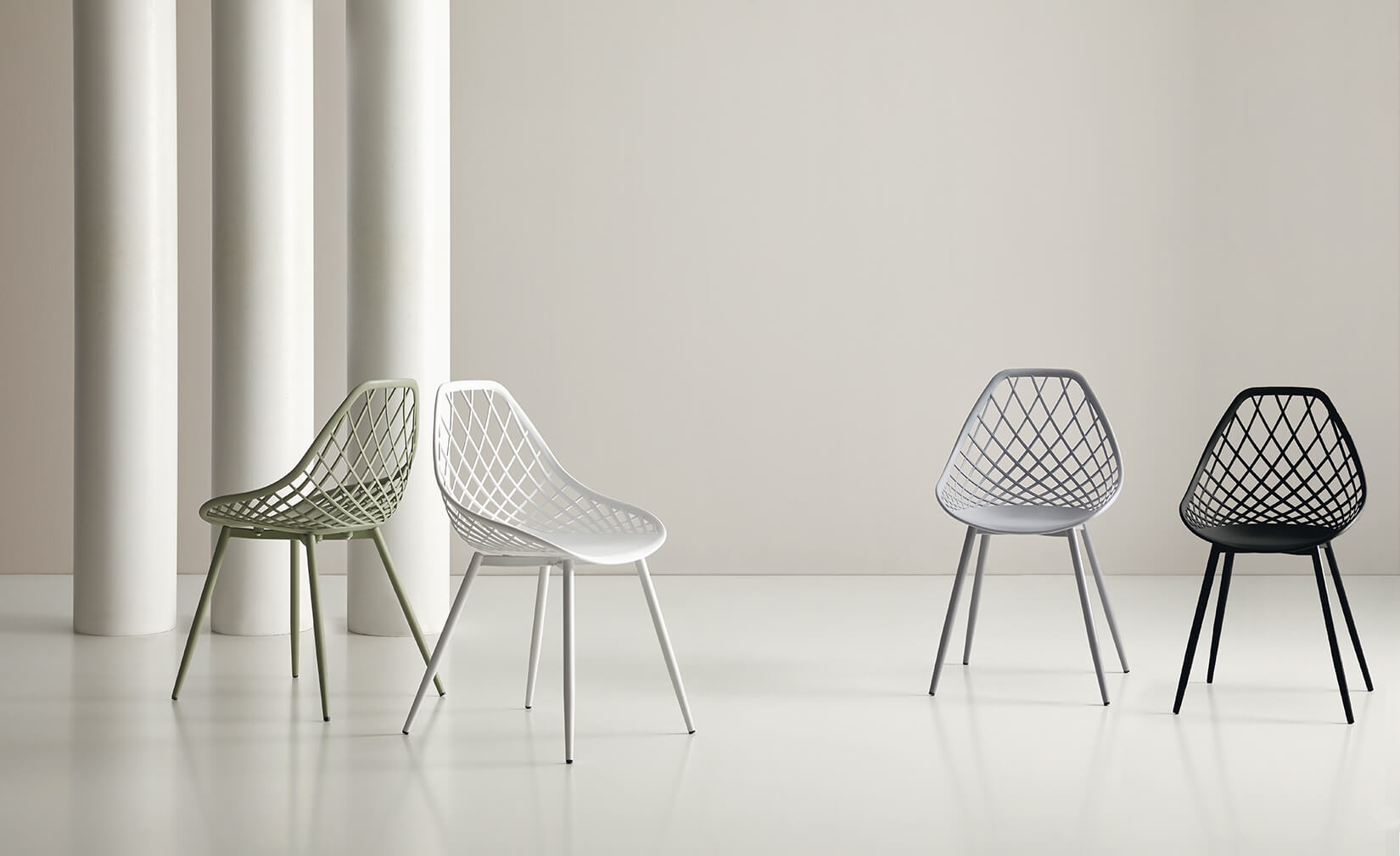 The grid design of the JOSIE chair, inspired by the latest trends, brings a touch of originality to any space.