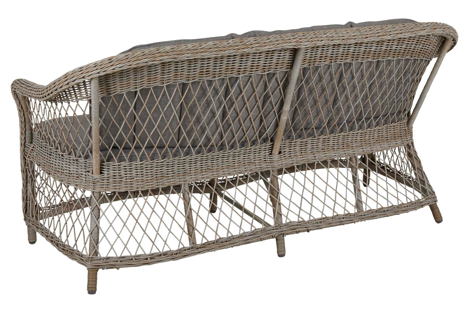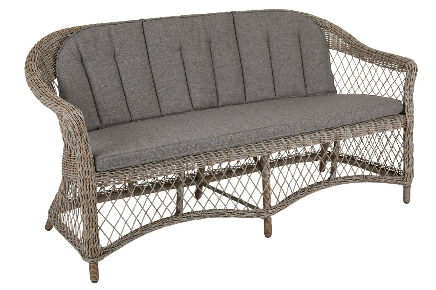 Beautiful, classic and inviting. This two-seater sofa in natural colored artificial rattan invites you to relax. Seat cushion and back cushion in beige olefin fabric are included.