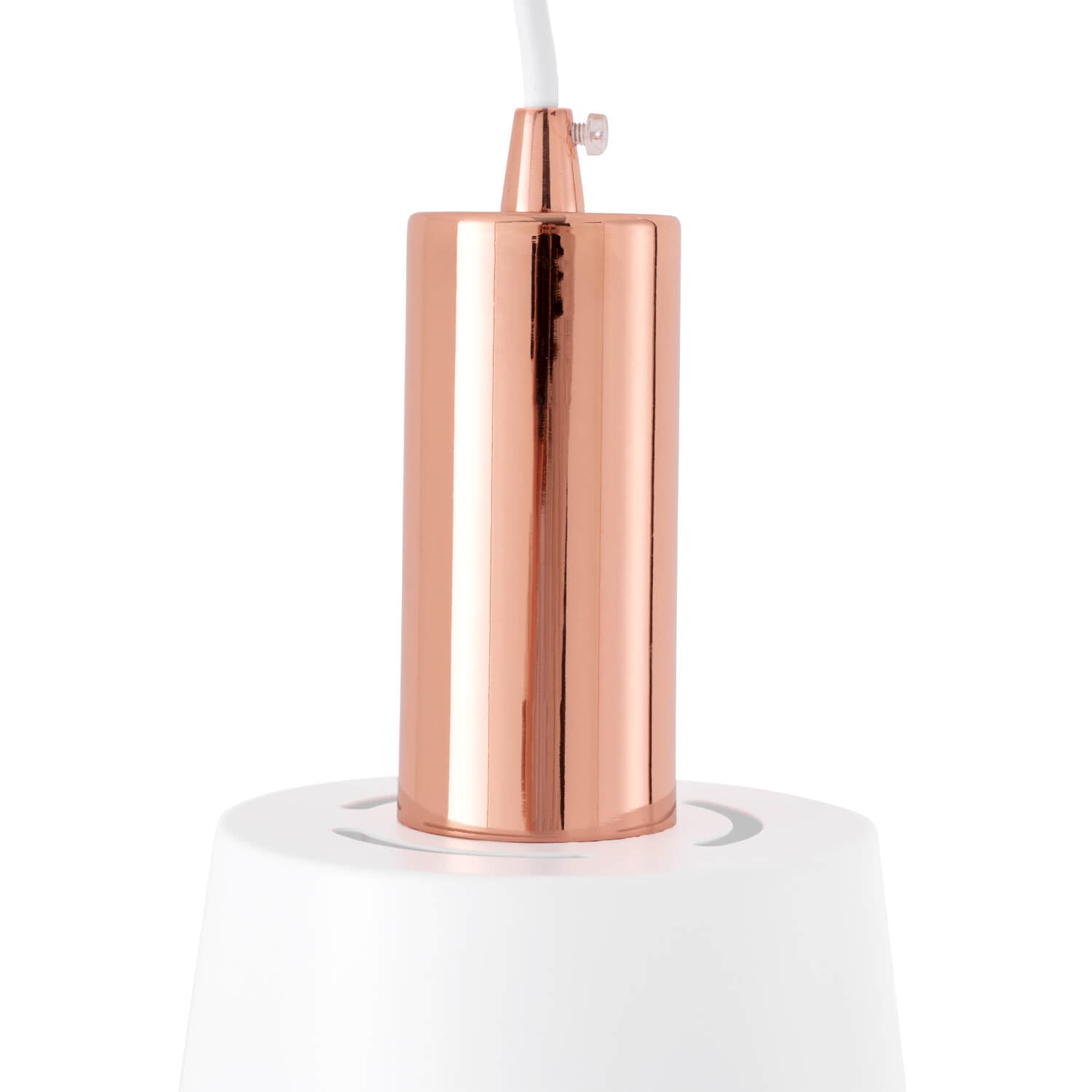 White and copper-colored metal lamp with 107 cm ceiling cable and round clamping plate Ø 10 cm