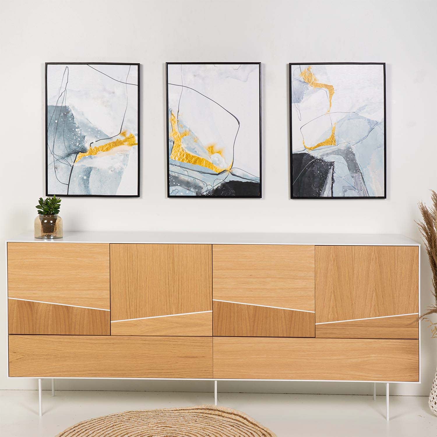 Together with MONEY 2 and MONEY 3 This piece uses gray, black, and white colors with bold gold lines that add a different touch.