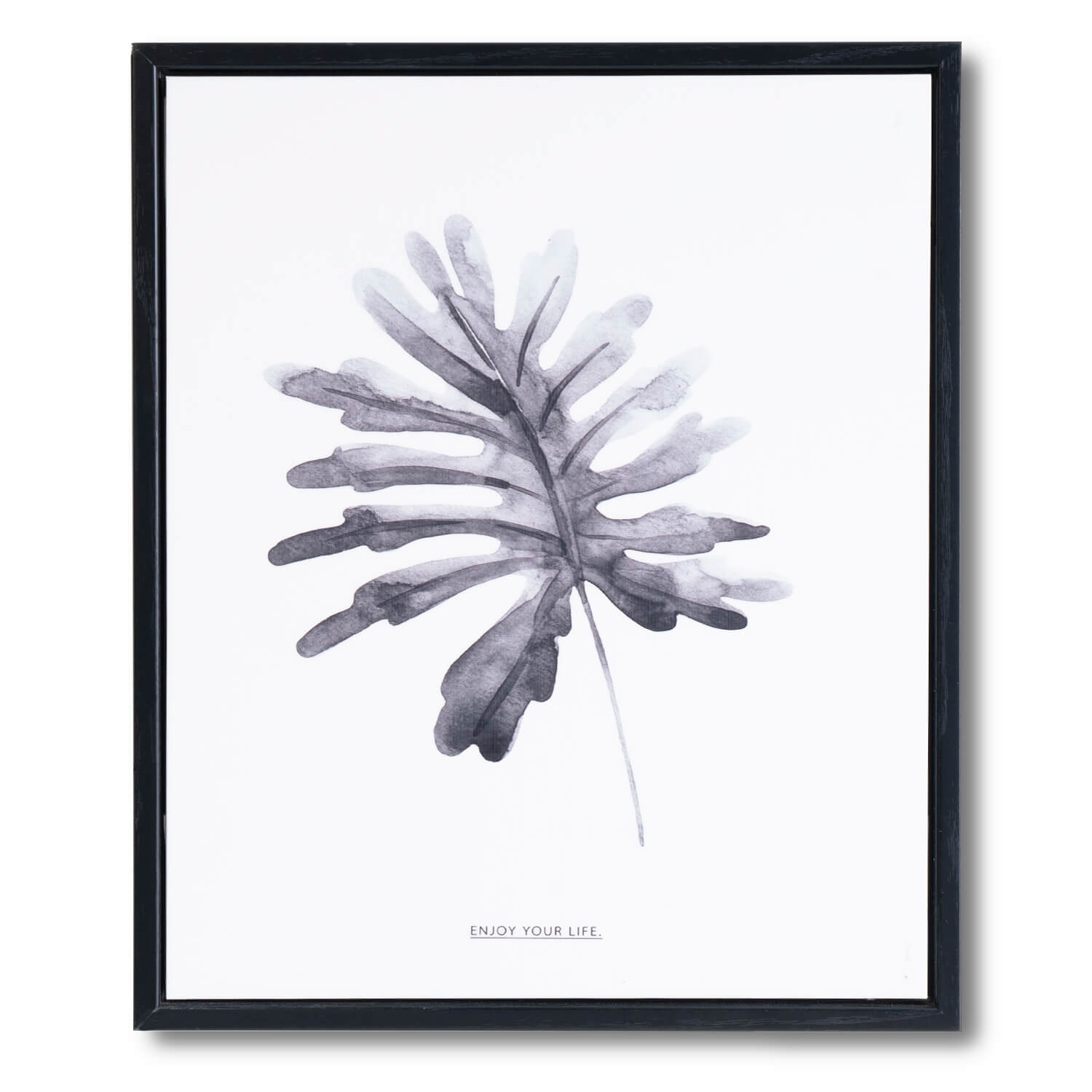 The calm conveyed by the palm leaf and the positive message can create a relaxing atmosphere, perfect for a space intended for rest.