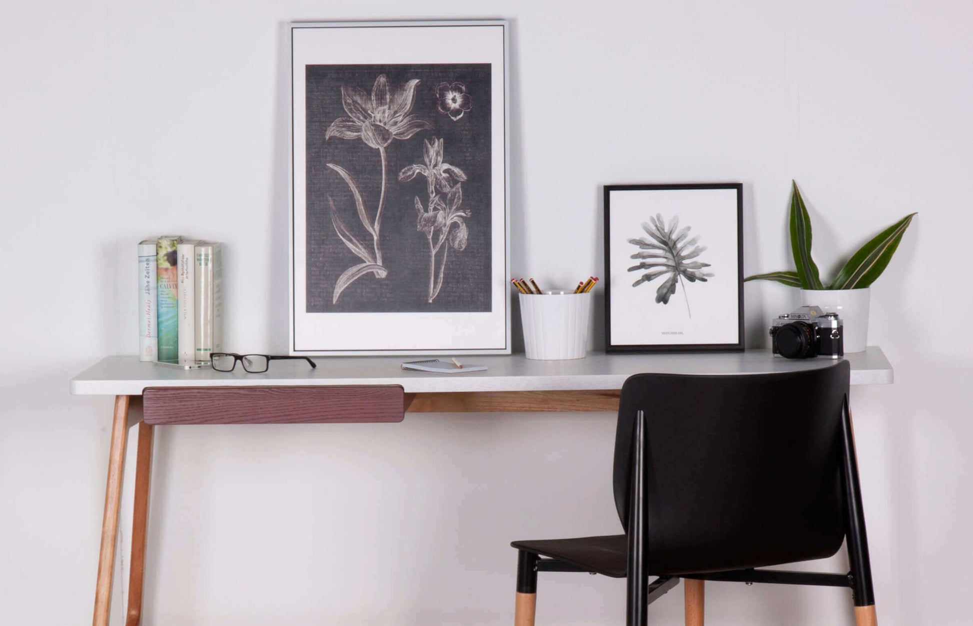 PALM captures the essence of contemporary design through the drawing of a monochromatic palm leaf, represented with watercolor technique.