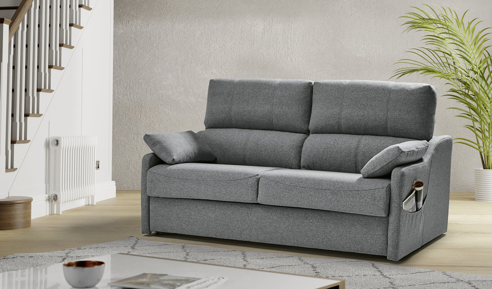 This sofa bed has the perfect width to fit in the smallest corners of your home. Width 169 cm. and 140 cm bed with Italian system.