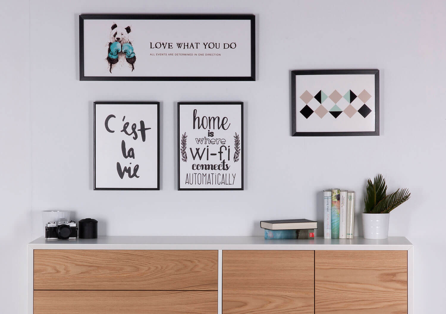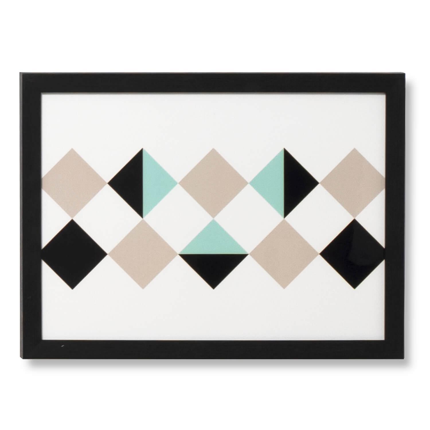 Black, beige and teal on a white background add some visual interest and minimalism.