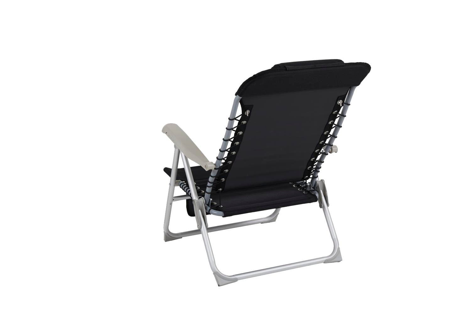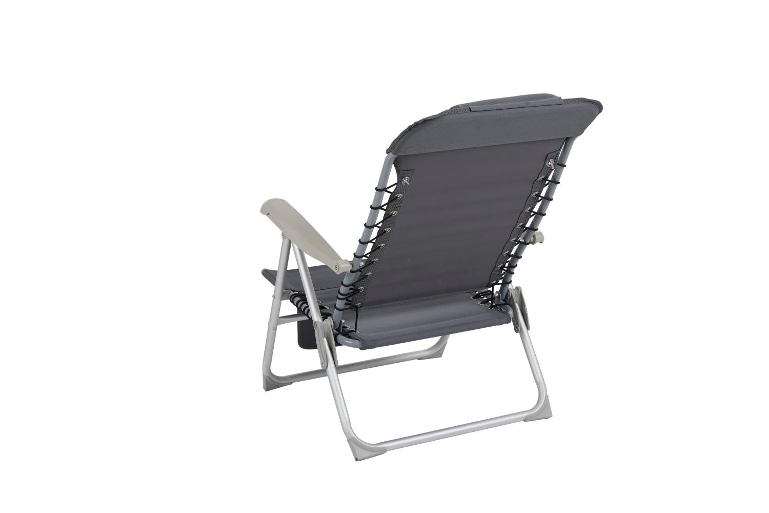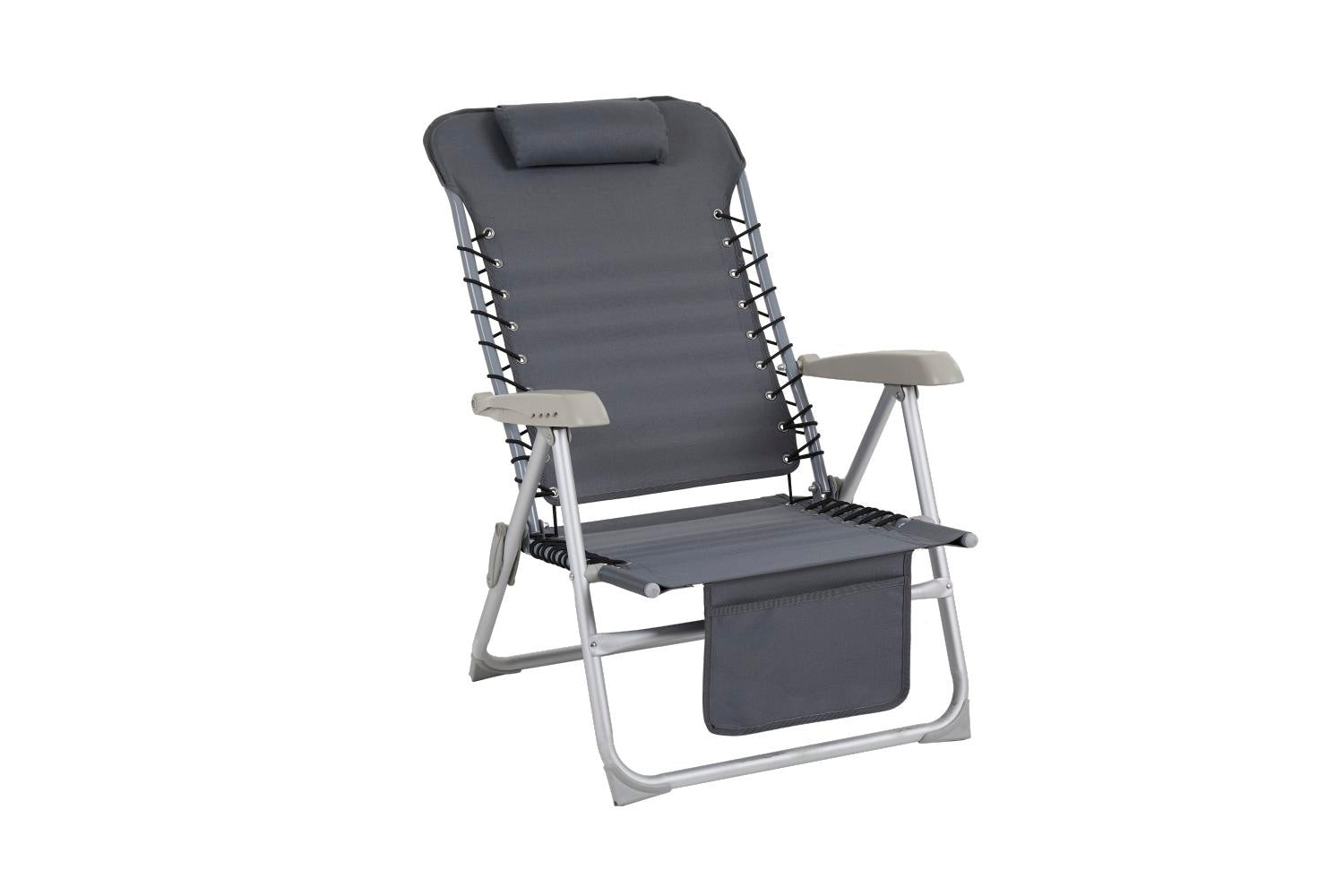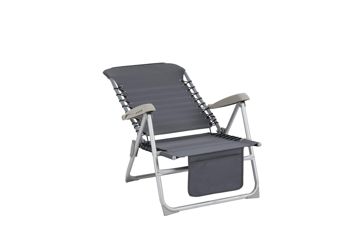 Nice and stackable beach chair with aluminum frame and durable polyester. Front pocket.