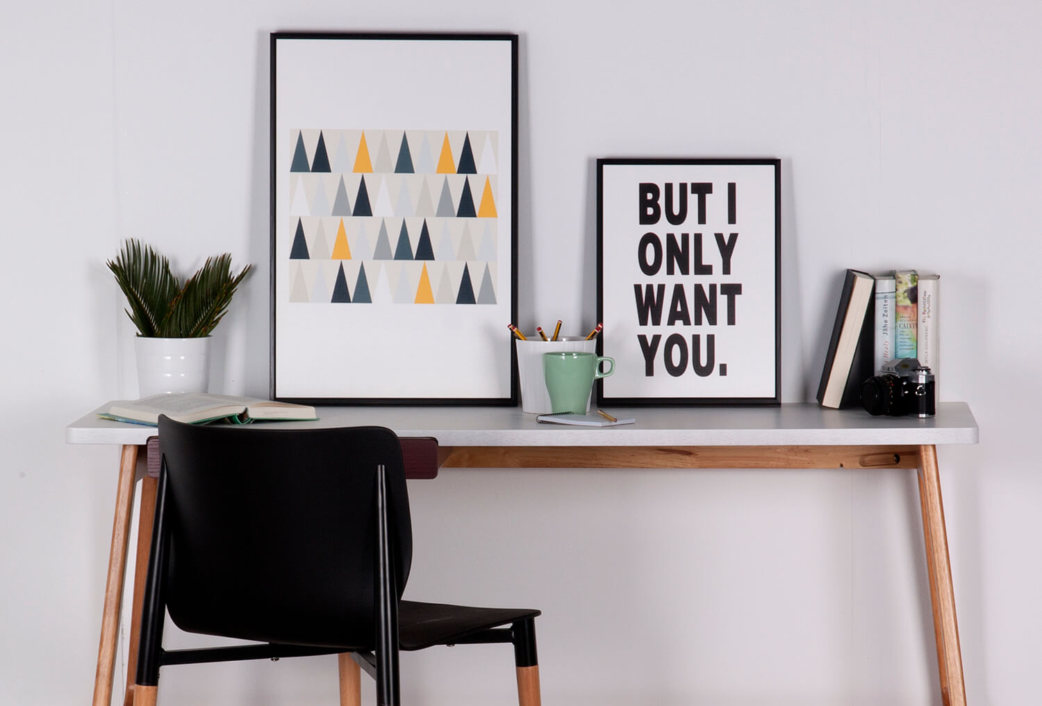 In the painting WANT YOU, the large capital letters distributed on different lines create a sense of strength and robustness.