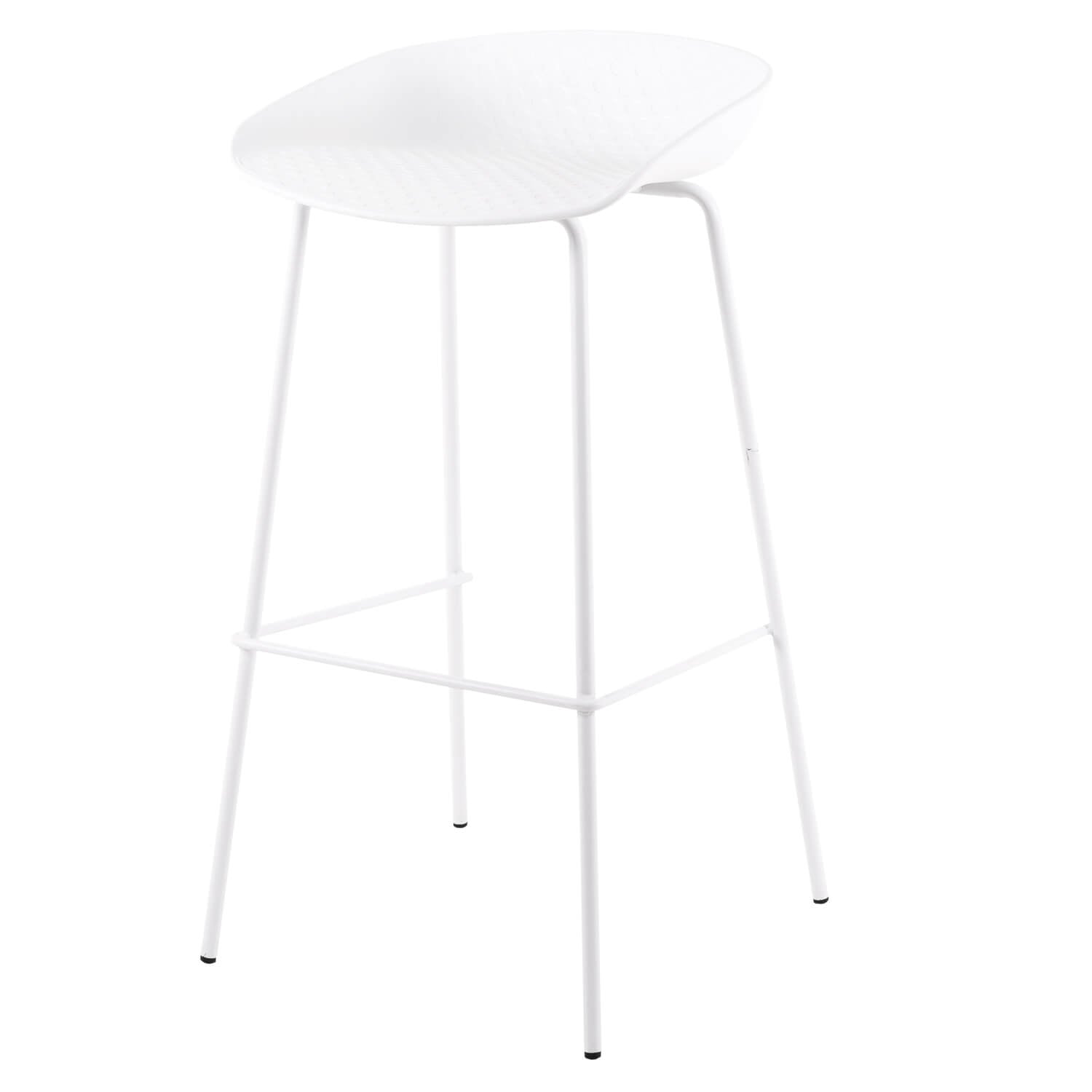 Con estructura metálica y respaldo y asiento fabricados en polipropileno de color negro, este taburete destaca por su versatilidad.