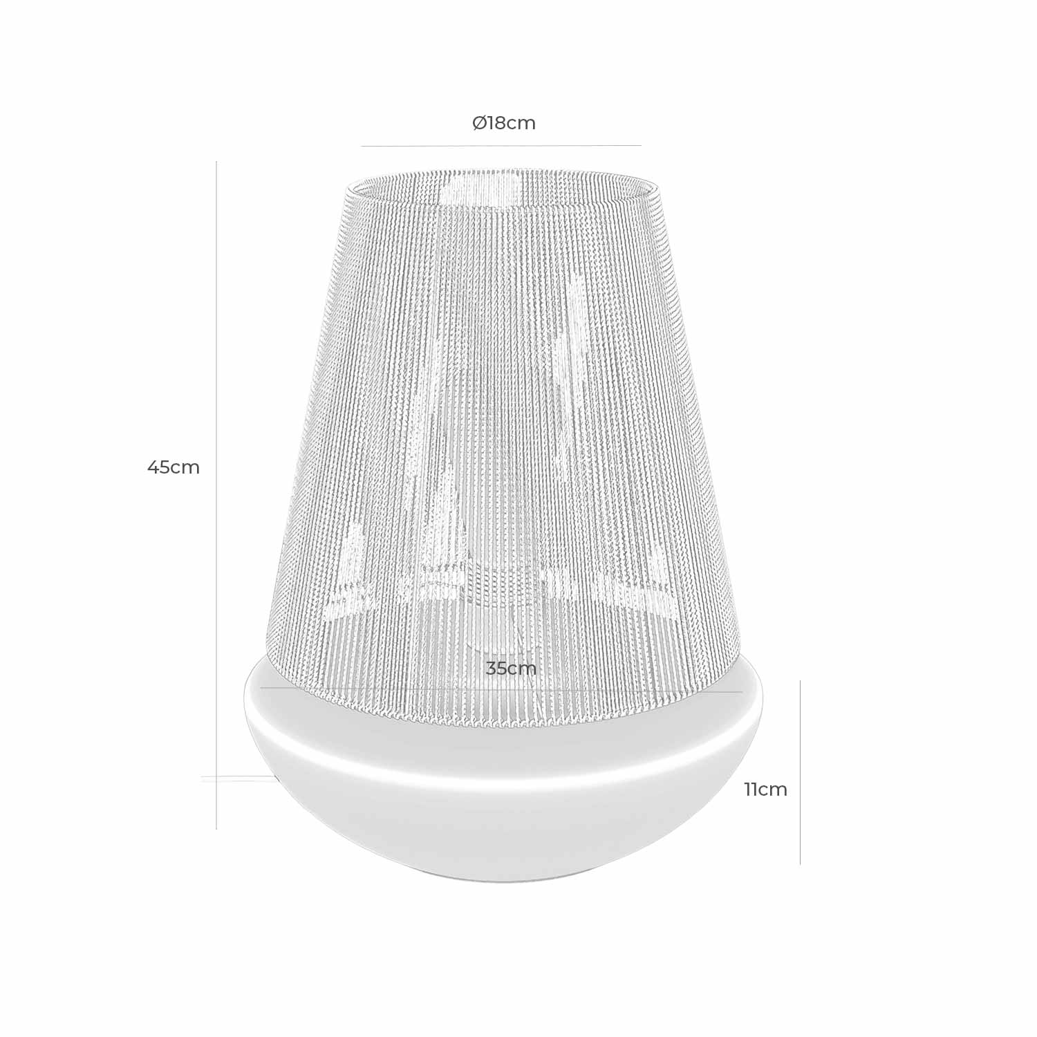 Esta lámpara tiene una profundidad de 35 cm y una altura de 45 cm.