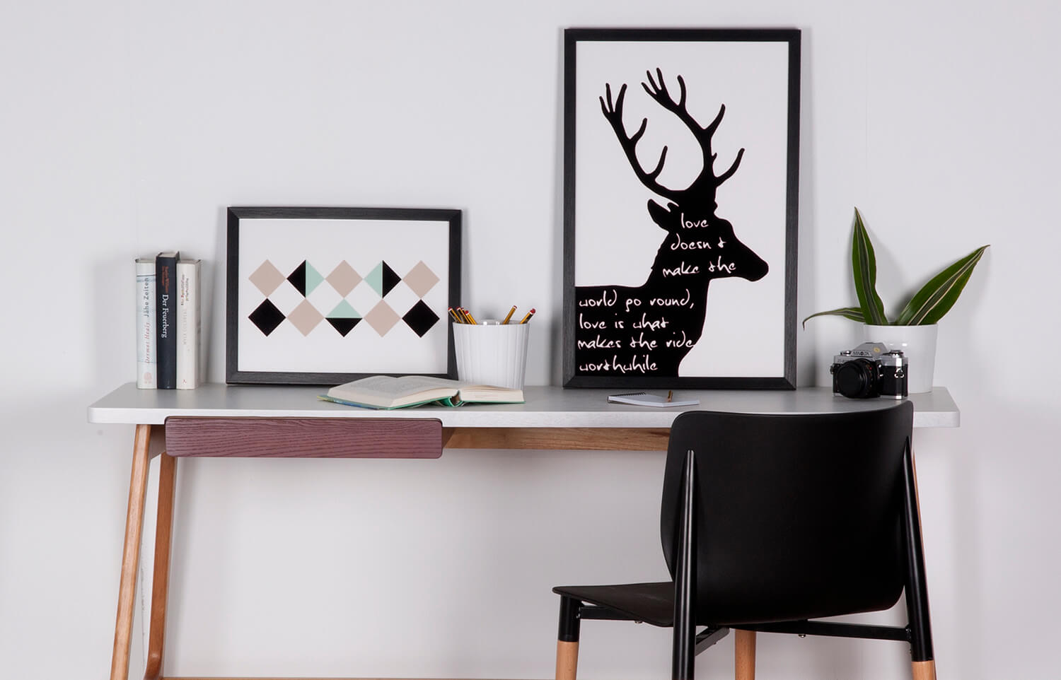 BLACK Deer presenta una sombra enmarcada de un ciervo con texto en el interior, y está acompañado por un marco negro que acentúa la simplicidad del diseño.