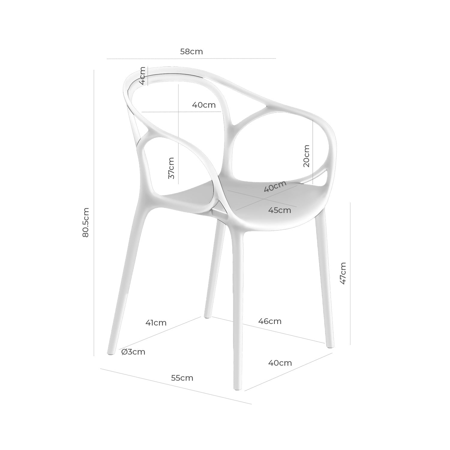 Silla fabricada en polipropileno, apilable y con un diseño minimalista y elegante.