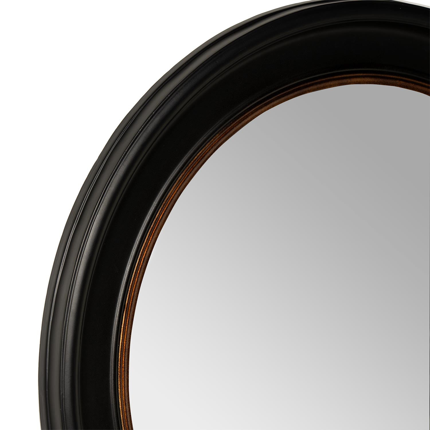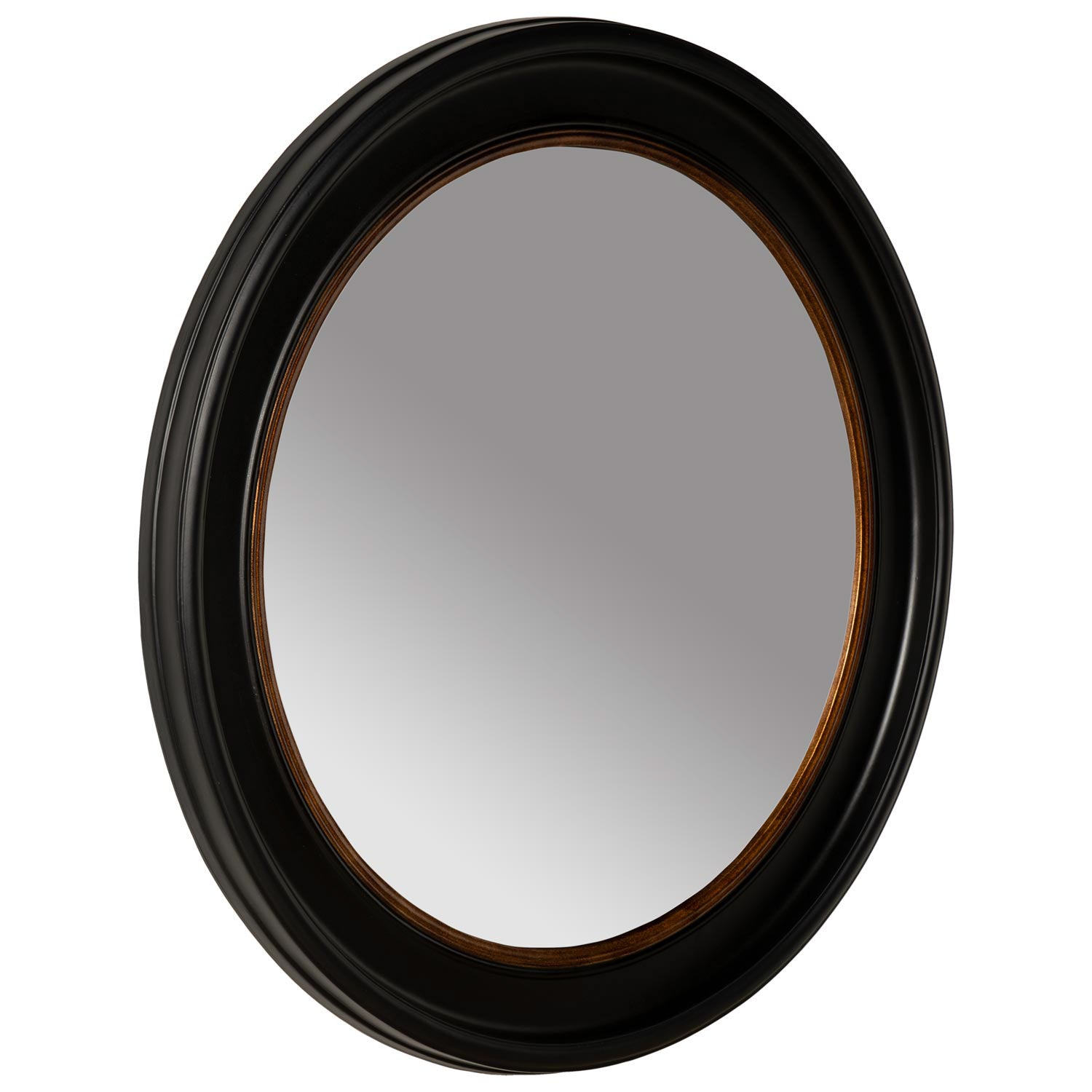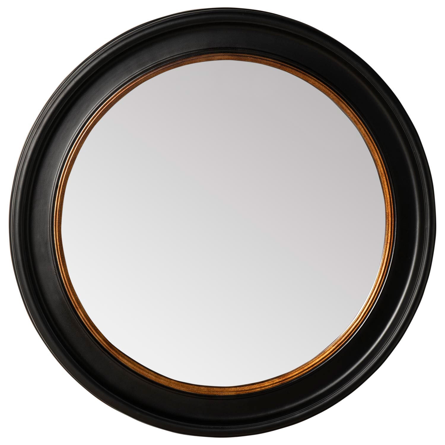 Espejo con diámetro ø 90 cm y marco de madera MDF negro.
