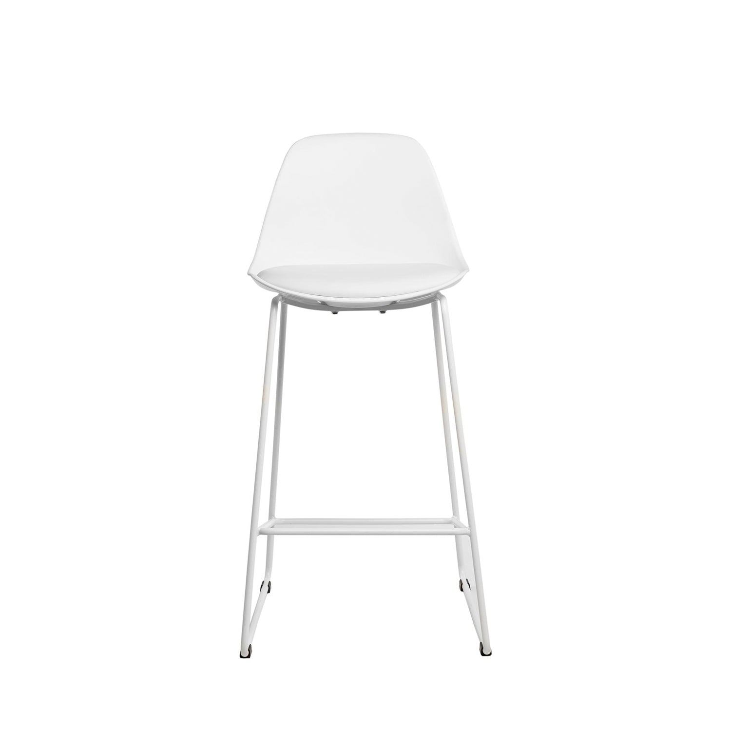 Sus patas metálicas, también en color negro, incluyen un reposapiés cuadrado con una ligera inclinación, que proporciona mayor estabilidad y un aspecto más refinado.