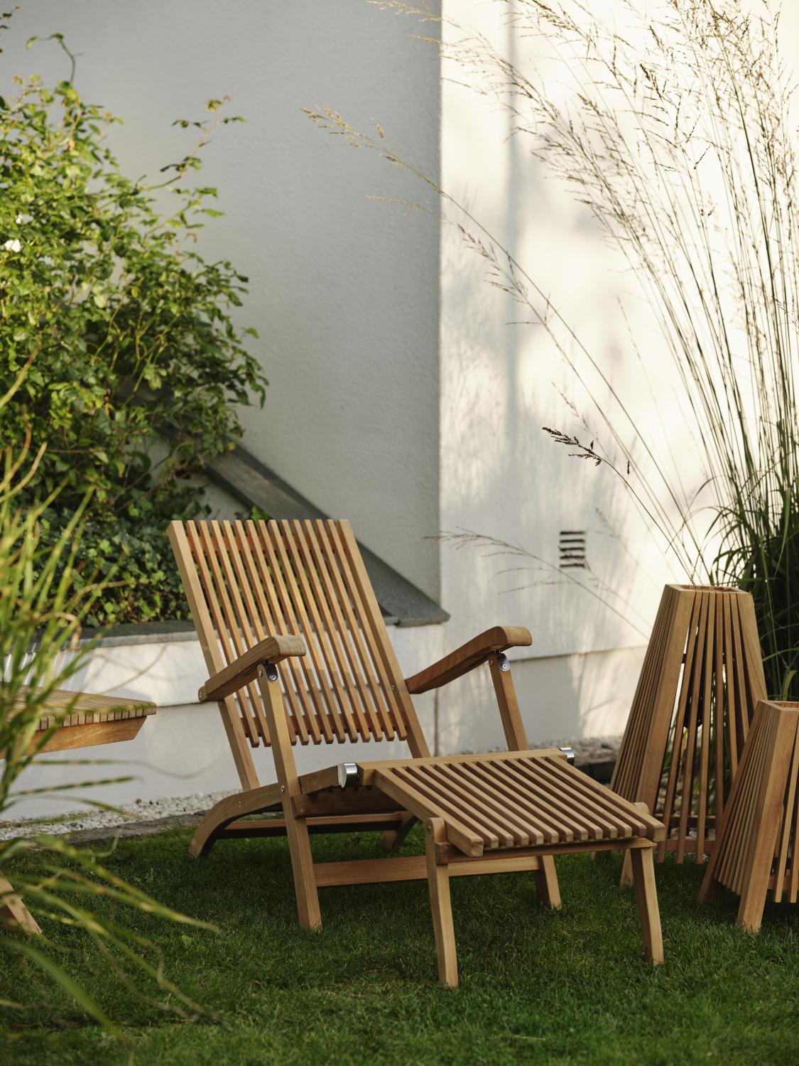 Relájate con estilo. Esta generosa tumbona tiene una hermosa combinación de comodidad y belleza. Las líneas rectas de la teca cobran especial protagonismo en este largo mueble de exterior. plegable.