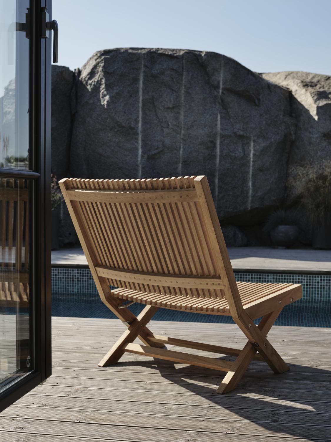 Con sus listones de teca, este sillón plegable es un diseño simple, relajante y sofisticado en su máxima expresión: tan elegante como cómodo, se adapta perfectamente a todo tipo de balcones. Además, extra ancho, para que quepan tanto usted como su libro o taza de café.