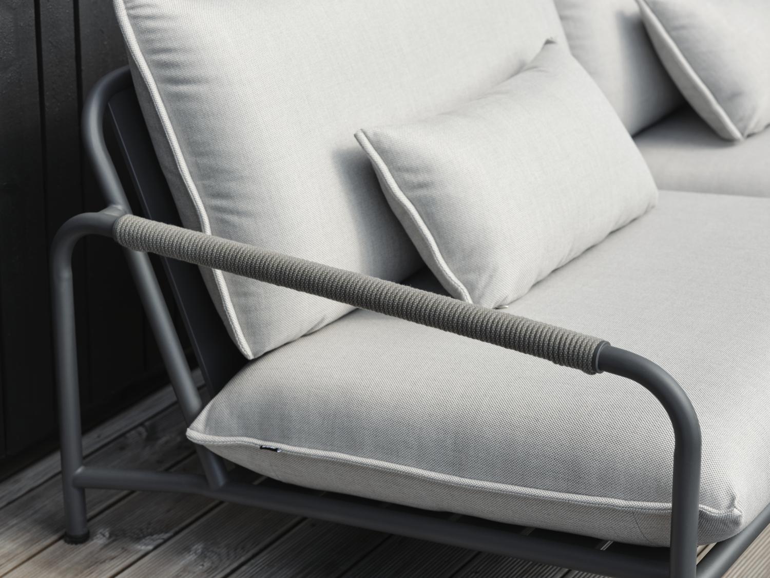 El diseño cuidadoso y la mayor comodidad posible se encuentran en este futuro clásico para un sofá lounge, con espacio para dos o tres. Viene en un moderno tono verde apagado o en el clásico gris antracita que se combina fácilmente con diferentes mesas de centro, cojines y mantas para un patio del que nunca querrás irte.