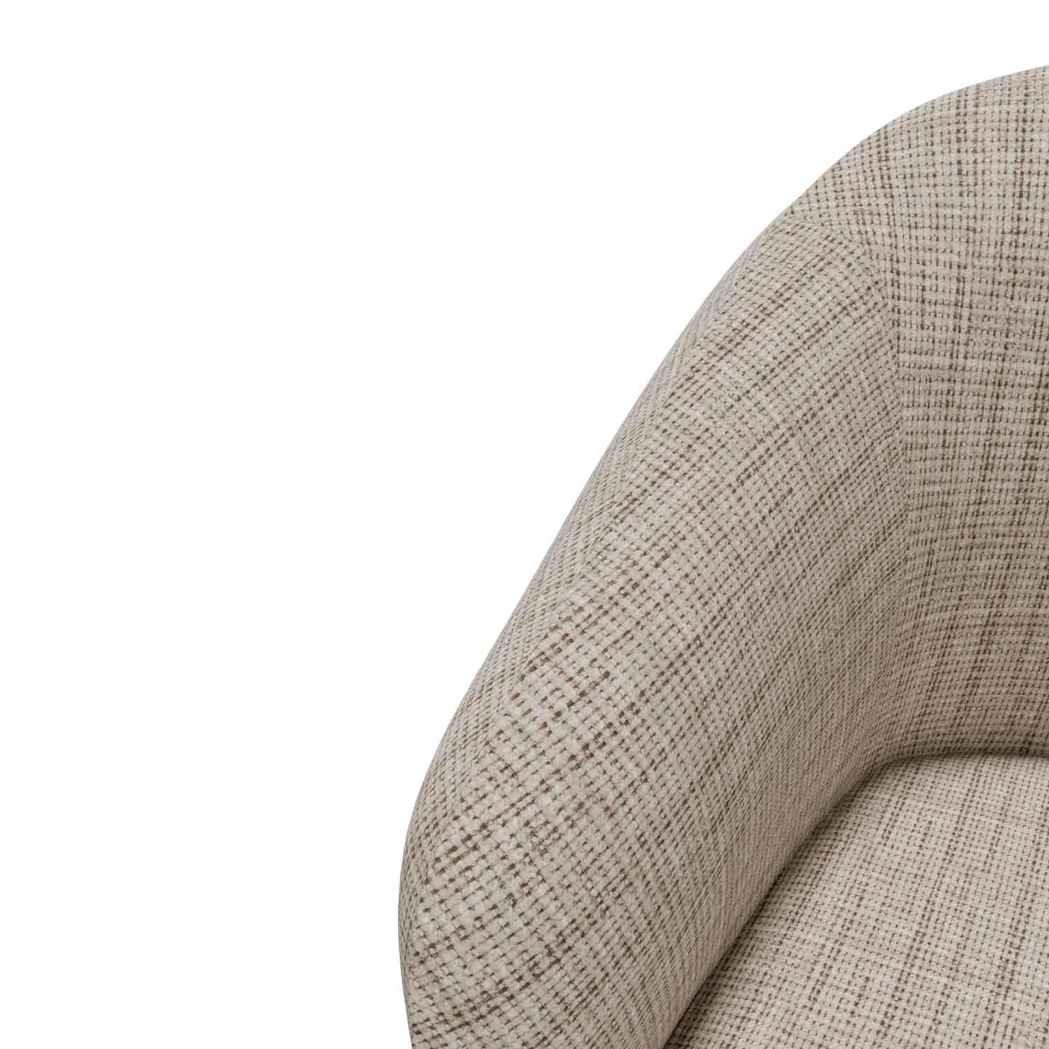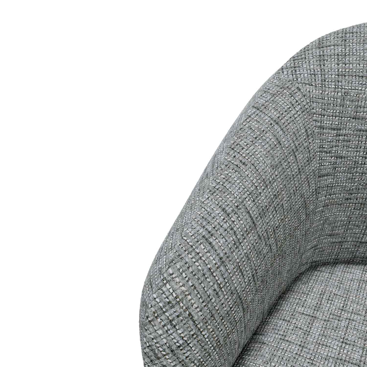 El respaldo se integra perfectamente con los reposabrazos, creando una forma continua y armoniosa. Además, las patas de metal negro le dan un toque moderno y elegante.