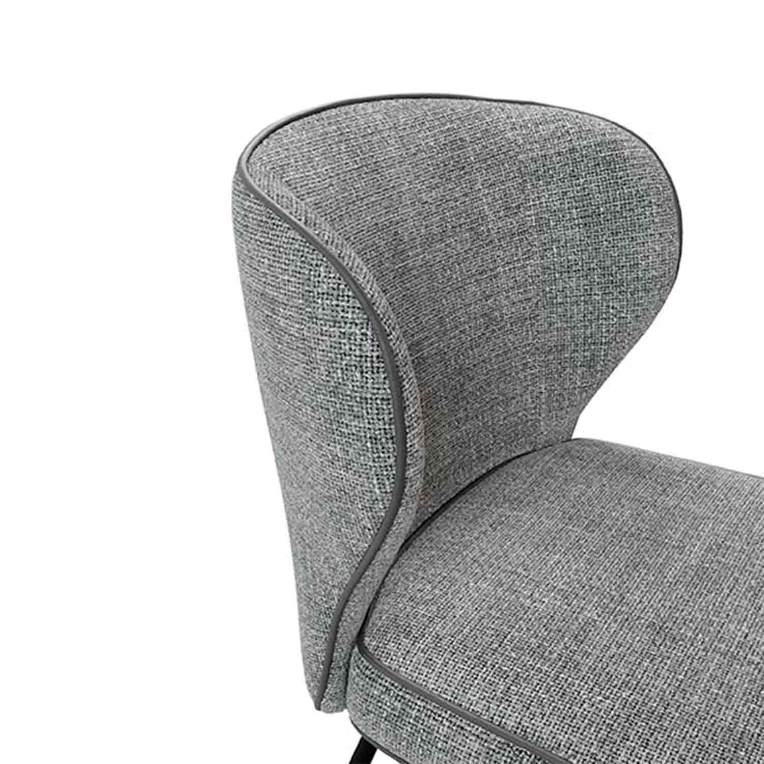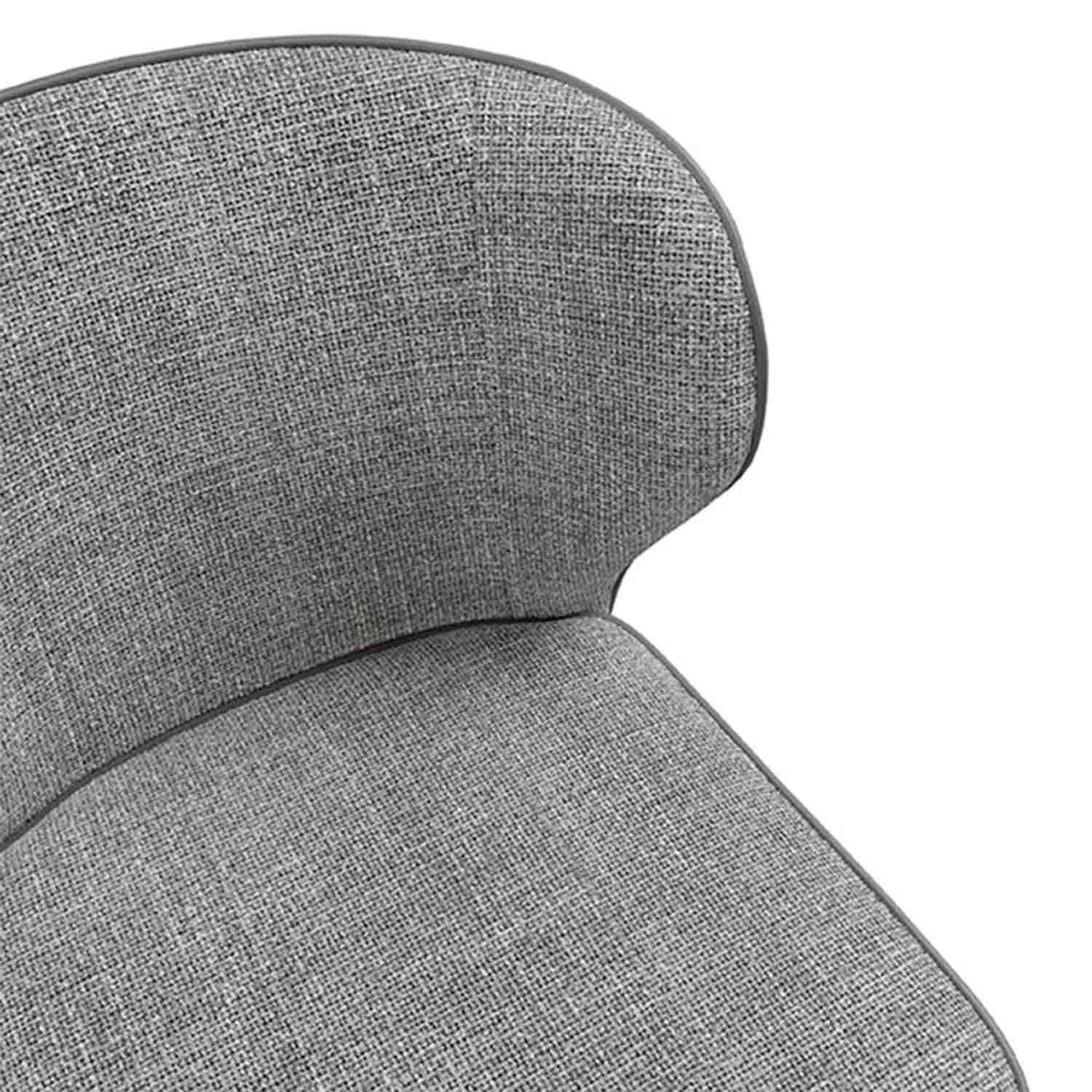 Su respaldo curvado y asiento acolchado, tapizado en gris claro, ofrecen comodidad y durabilidad.