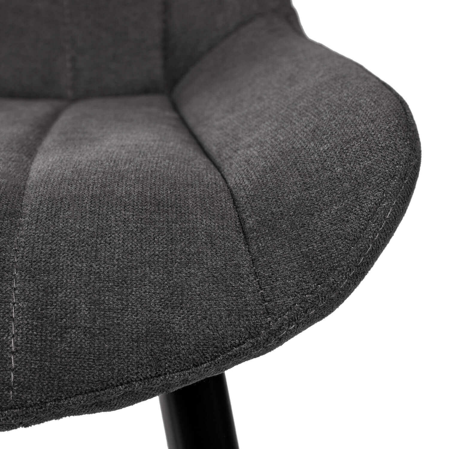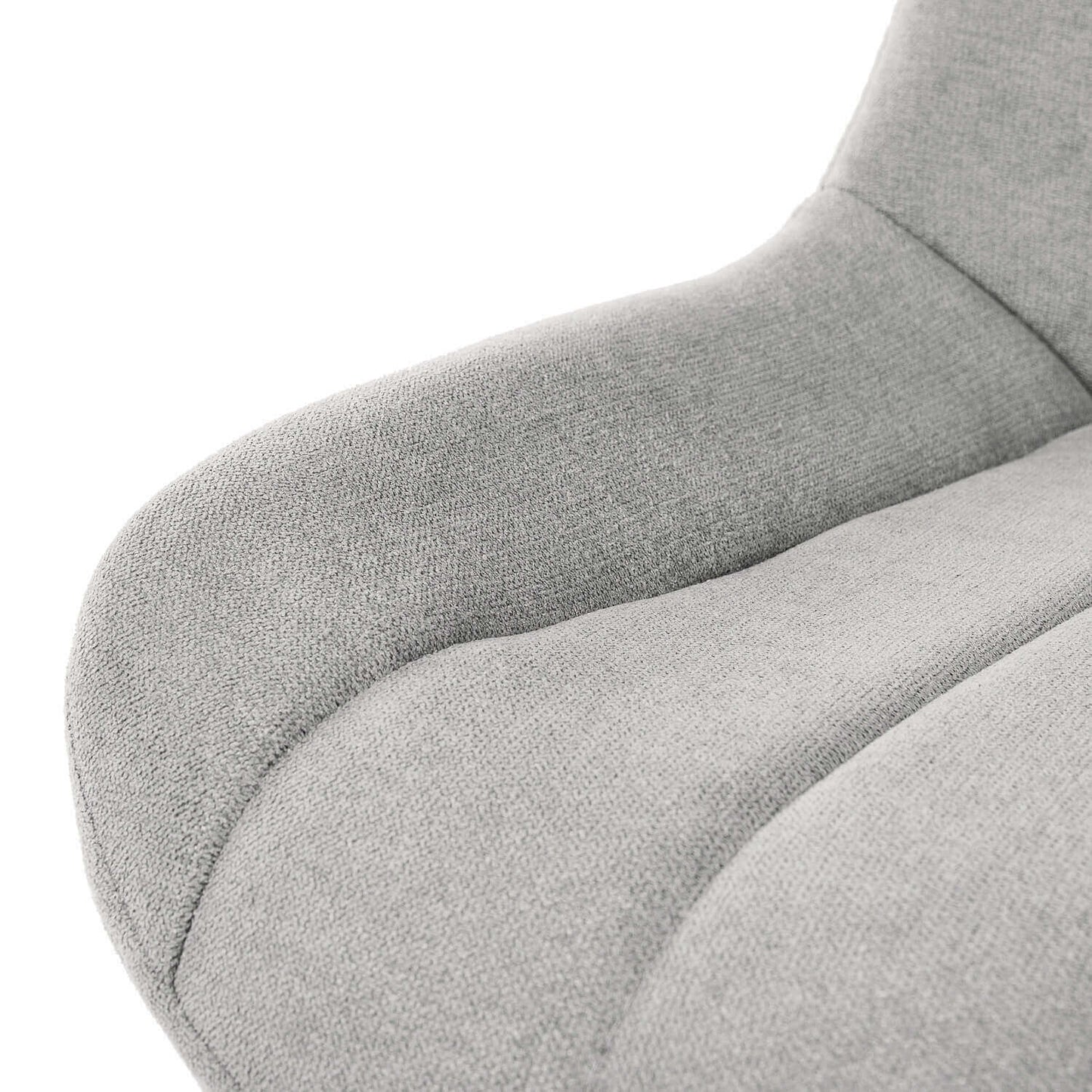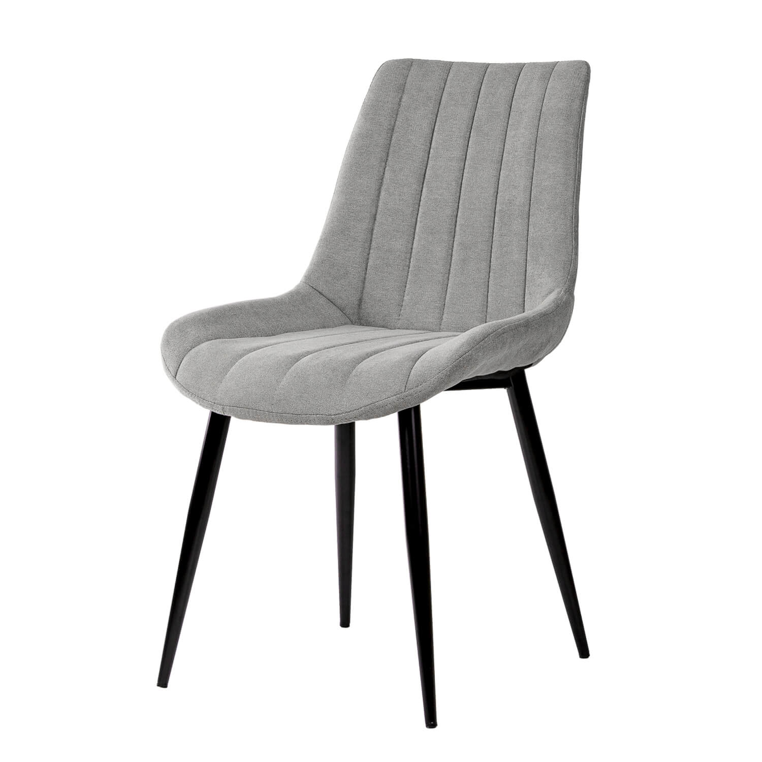 La tapicería gris claro, con una línea horizontal estructurada, añade un toque de sofisticación y modernidad. Las patas cónicas de metal, acabadas en negro, no solo proporcionan un atractivo contraste visual, sino que también garantizan estabilidad y durabilidad.