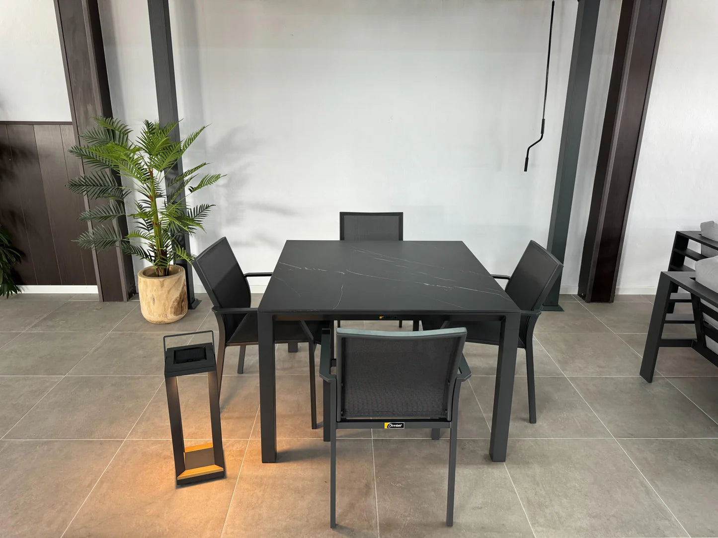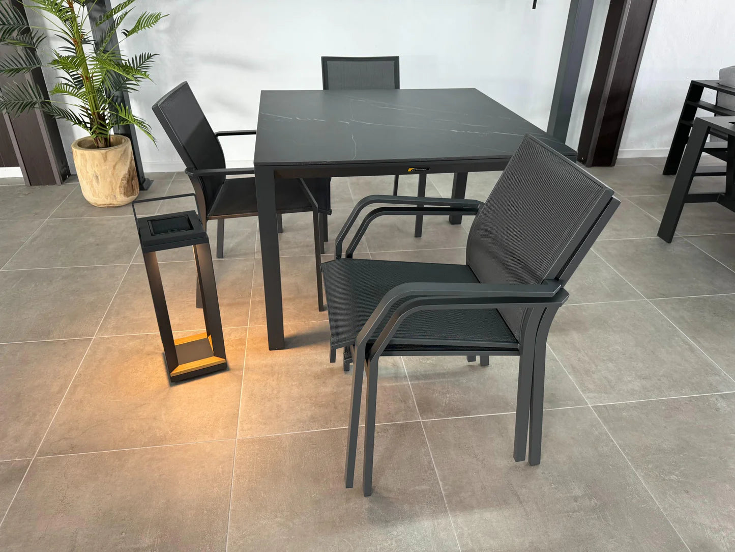 El juego de comedor cuadrado Monaco de 1,1 m presenta una combinación de elegancia y funcionalidad con su tapa de piedra sinterizada y estructura de aluminio. Fabricado tanto para uso interior como exterior. La losa de piedra sinterizada ofrece una durabilidad y un atractivo estético inigualables. A diferencia del vidrio, la piedra sinterizada no es porosa. lo que garantiza la resistencia a las manchas. rayones y calor. siendo fácil de limpiar y mantener. Su composición robusta lo hace ideal para diversas condiciones climáticas y promete una larga vida útil.