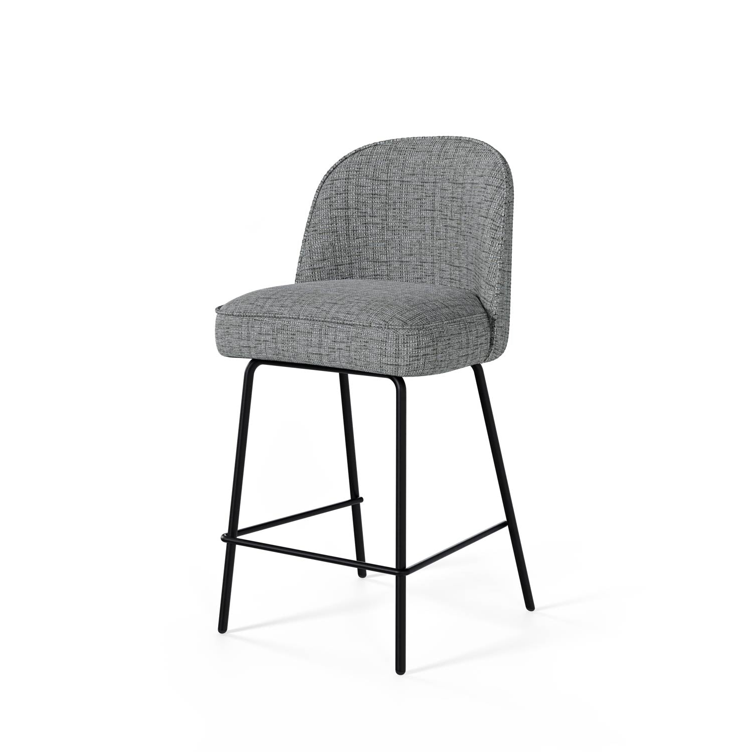 El taburete bajo NELSON destaca por su diseño moderno y elegante, perfecto para interiores modernos. El asiento y el respaldo están tapizados en una suave tela de poliéster 100% gris claro que proporciona comodidad y estilo.