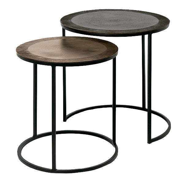 El juego de mesas auxiliares SHANKAR redefine el minimalismo con un toque artesanal y un diseño repleto de detalles. Compuesto por dos mesas de aluminio, cada una cuenta con un tablero con un intrincado relieve que aporta textura y profundidad, transformando cualquier superficie en un punto de atracción que atraerá todas las miradas.