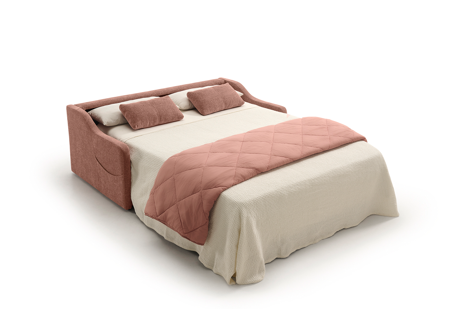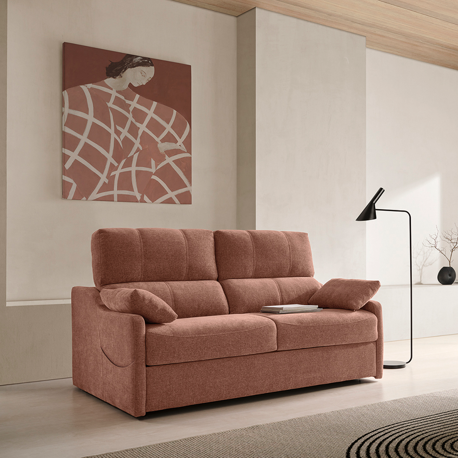 Este sofá cama tiene la anchura perfecta para encajar en los rincones más pequeños de tu hogar. Ancho 169cm. y cama de 140 cm con sistema italiano.