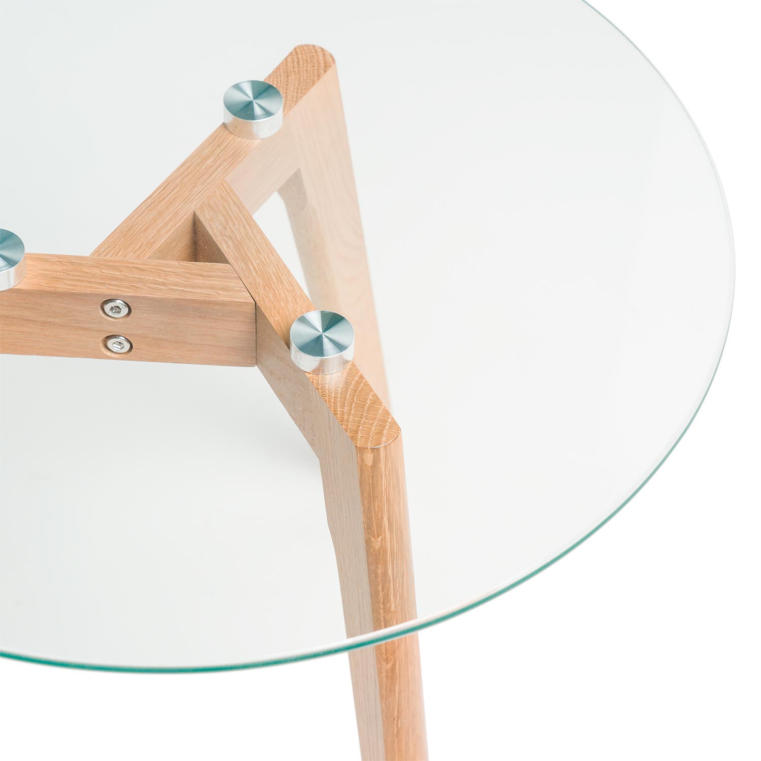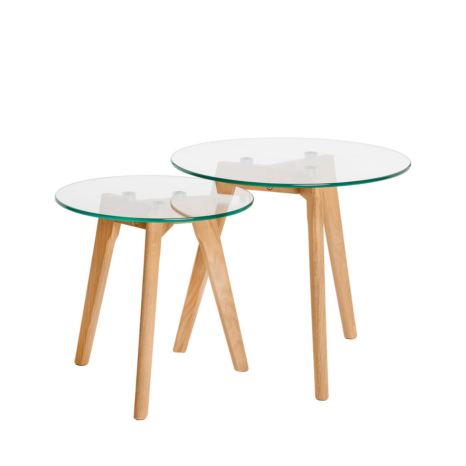 Set med soffbord med 8 mm skiva i härdat glas och träben.