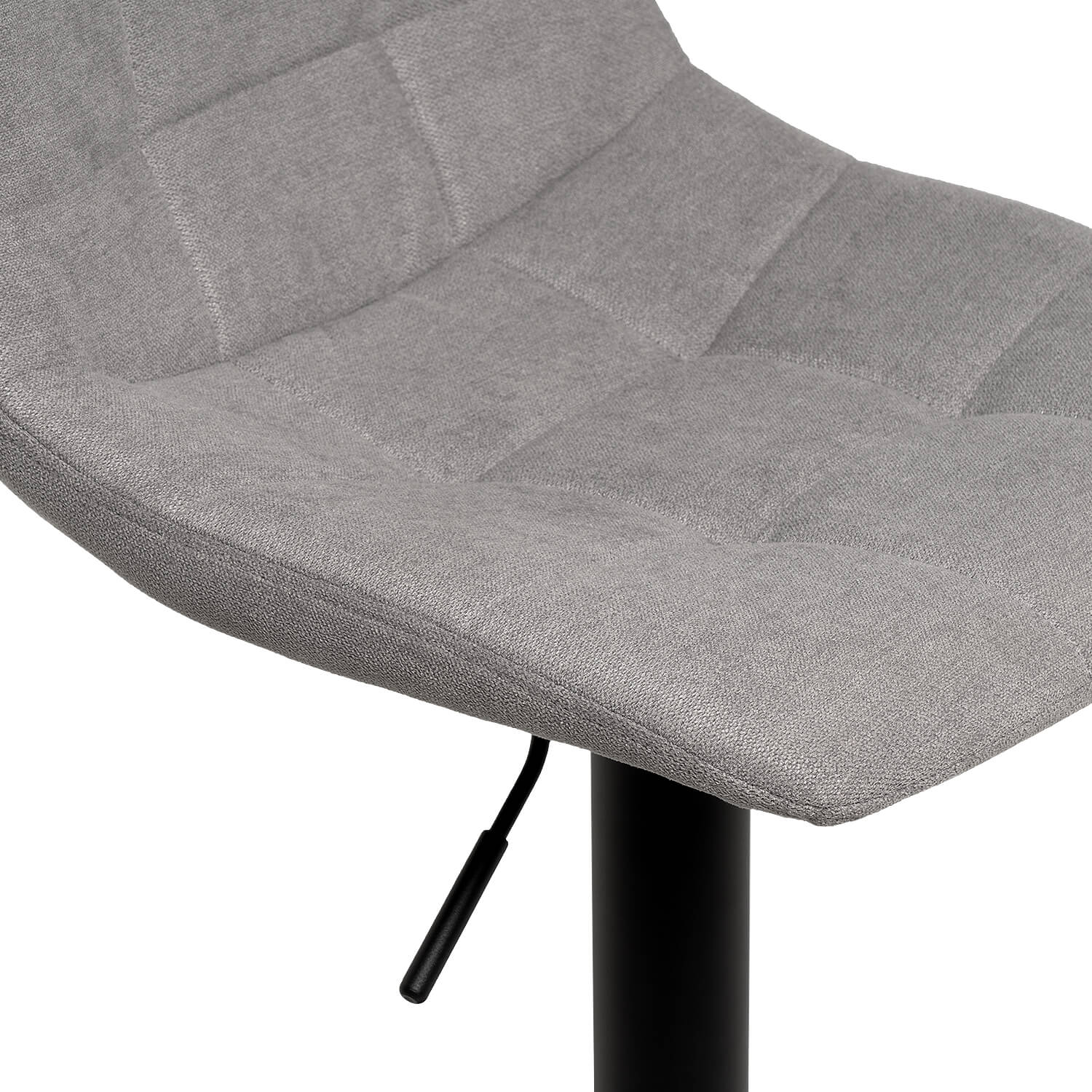 Dess vadderade klädsel i ljusgrått, gjord av 100 % polyester, ger en touch av elegans och komfort. Den svarta matta metallstrukturen fullbordar dess moderna och sofistikerade utseende.