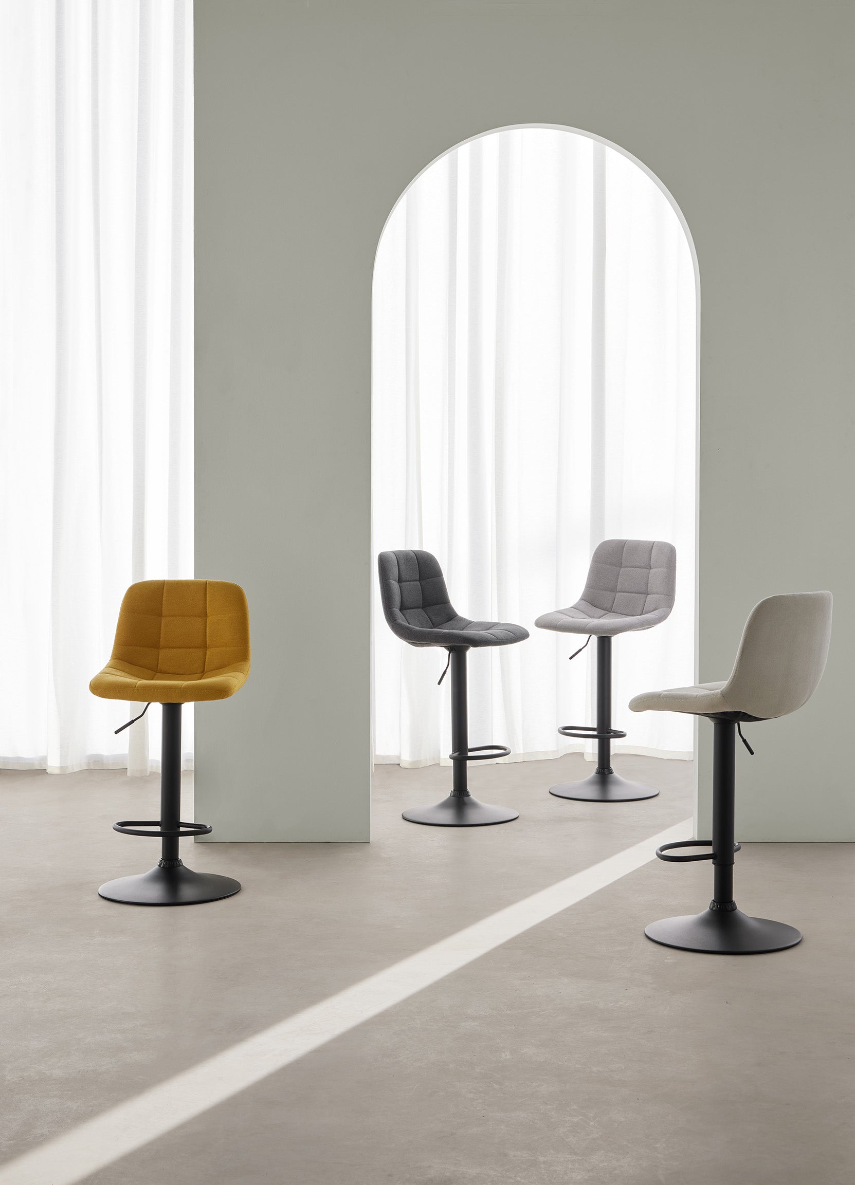 Med pallen ASHA kan du justera sitthöjden efter dina behov, tack vare den praktiska kolvlyftmekanismen. Dessutom ger dess 360º rotationskapacitet dig total rörelsefrihet.