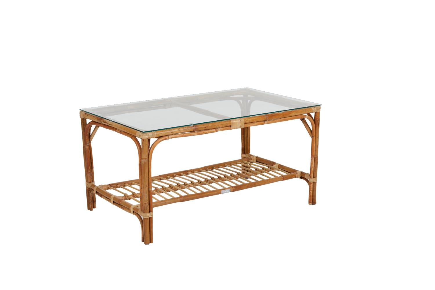 Mindre rektangulärt bord med bordsskiva i glas.