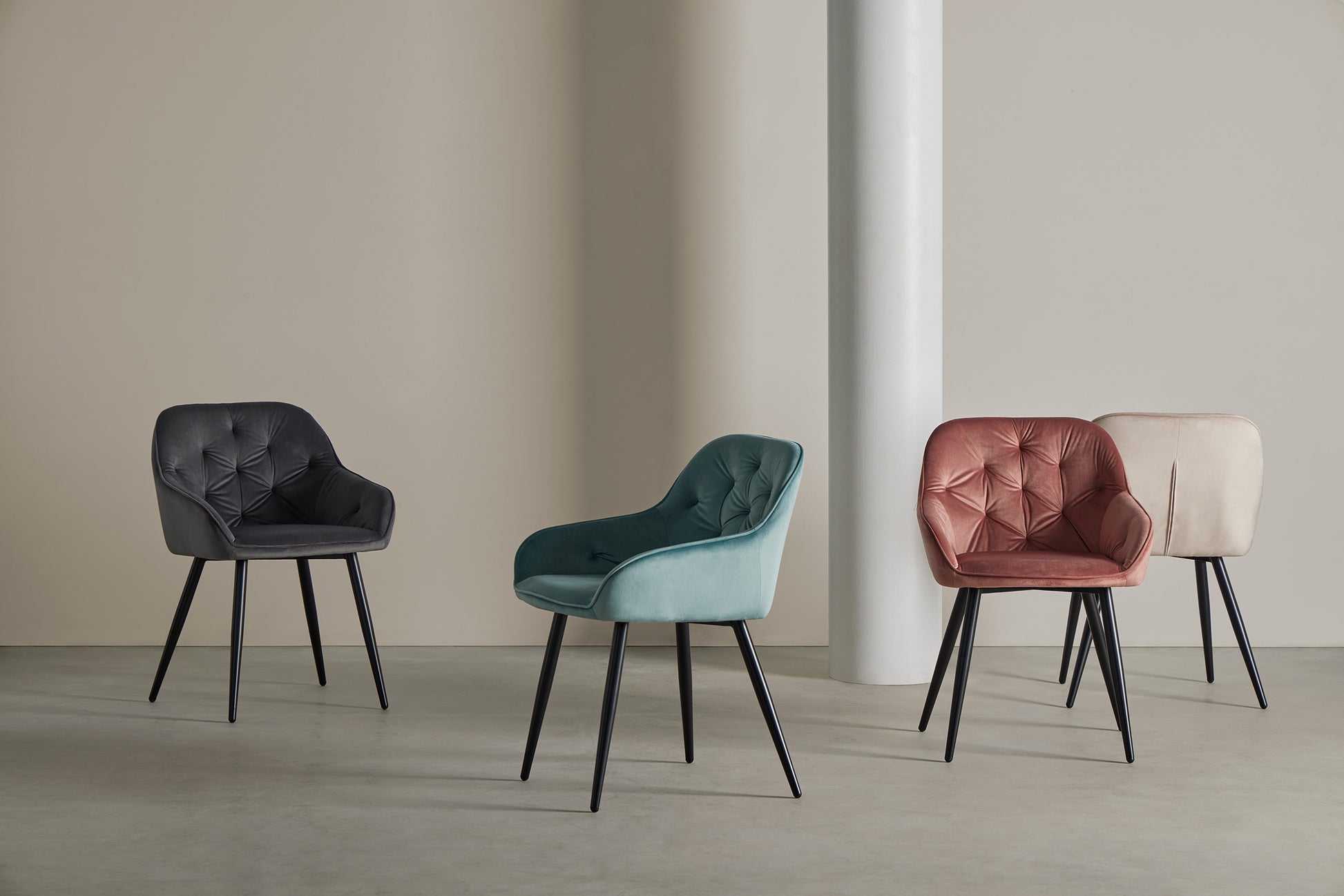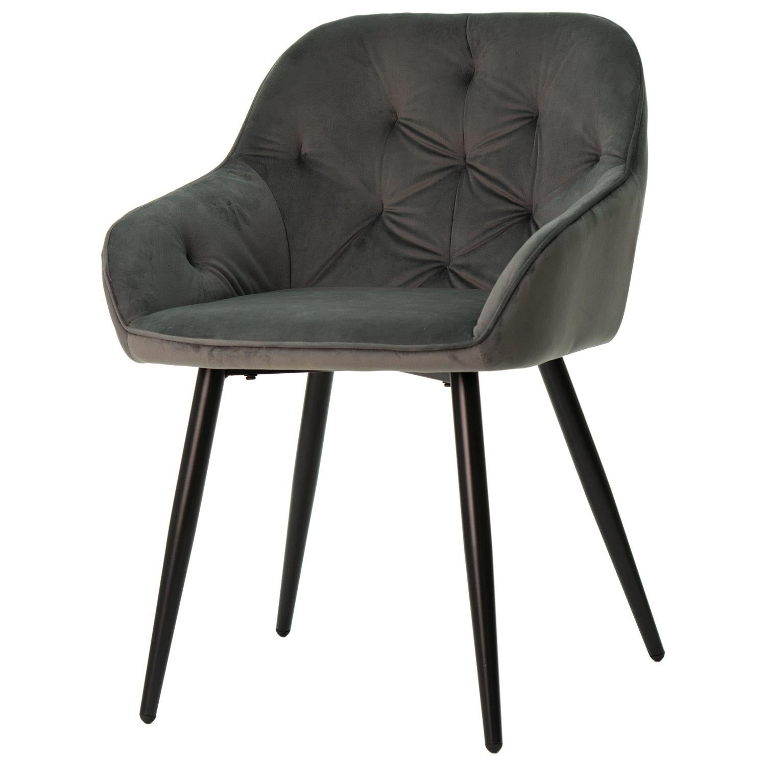 Stol klädd med grått VELVET-tyg med svarta metallben