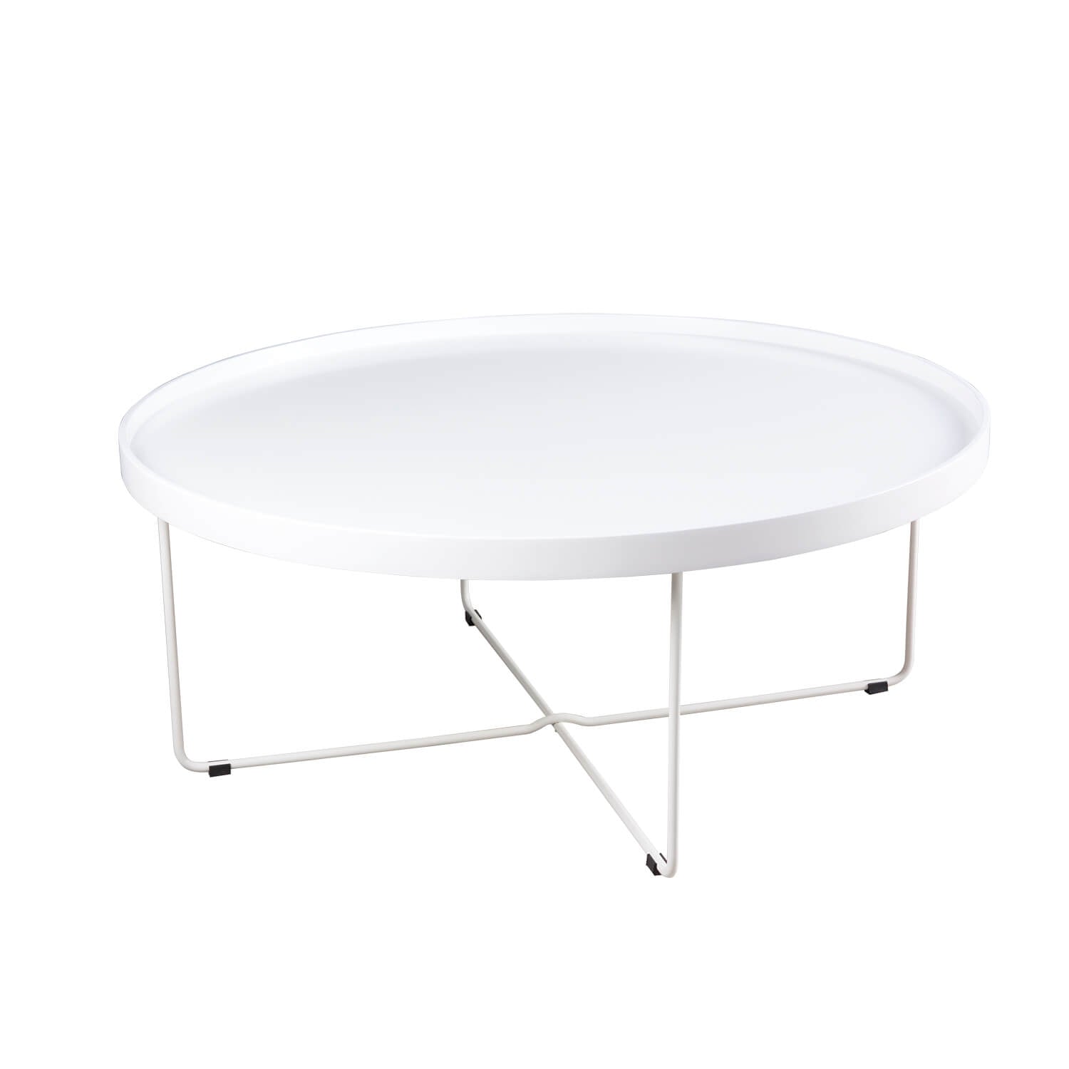 Runt soffbord med stor kapacitet, tillverkat med en matchande metallbas och en skiva ø 80 cm med brickdesign, gjord av tjock och sänkt 40 mm lackerad DM.