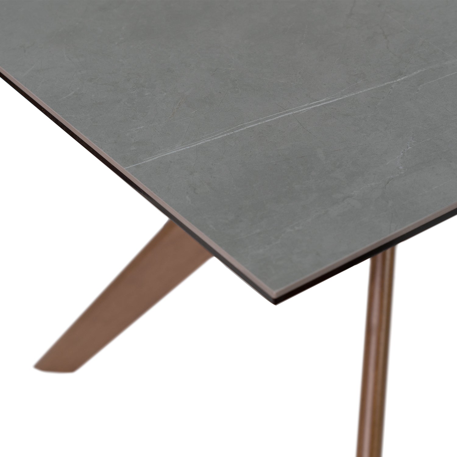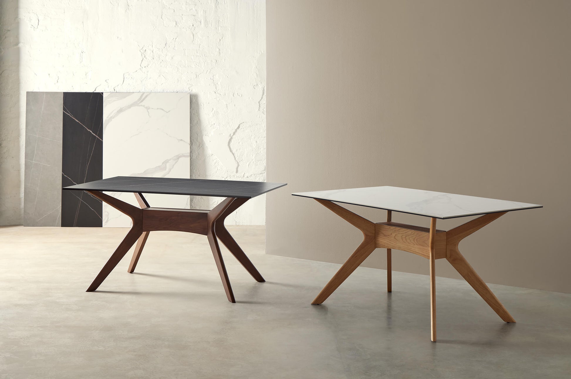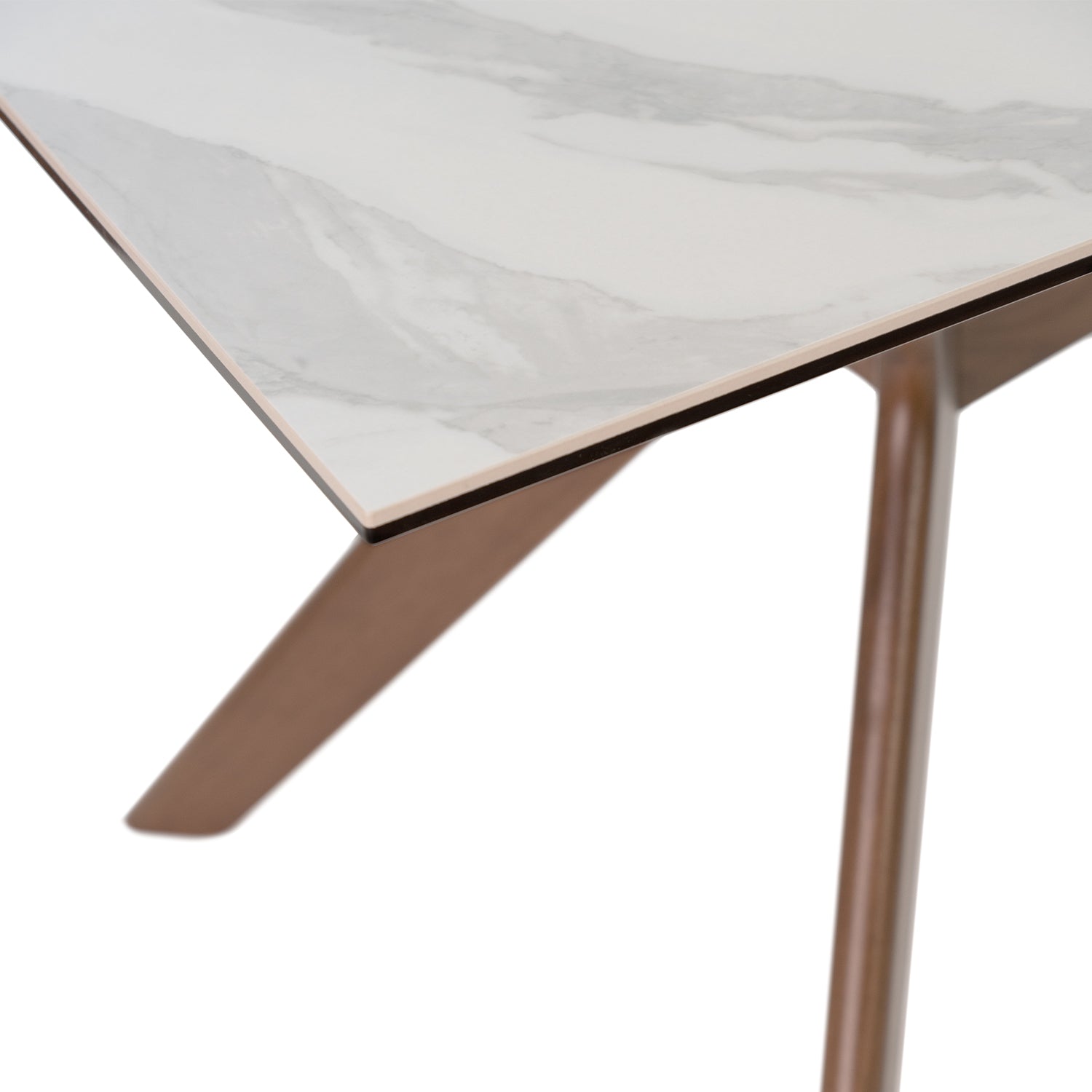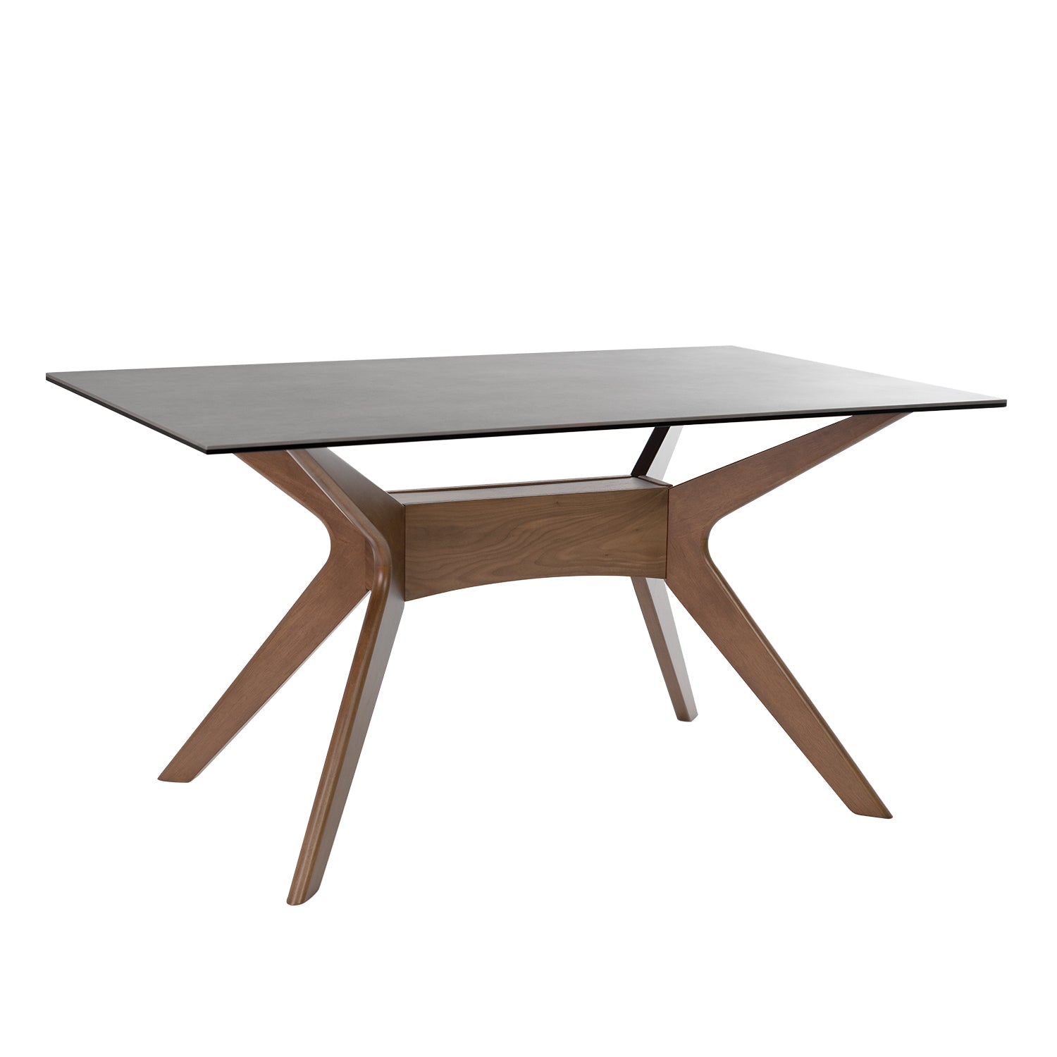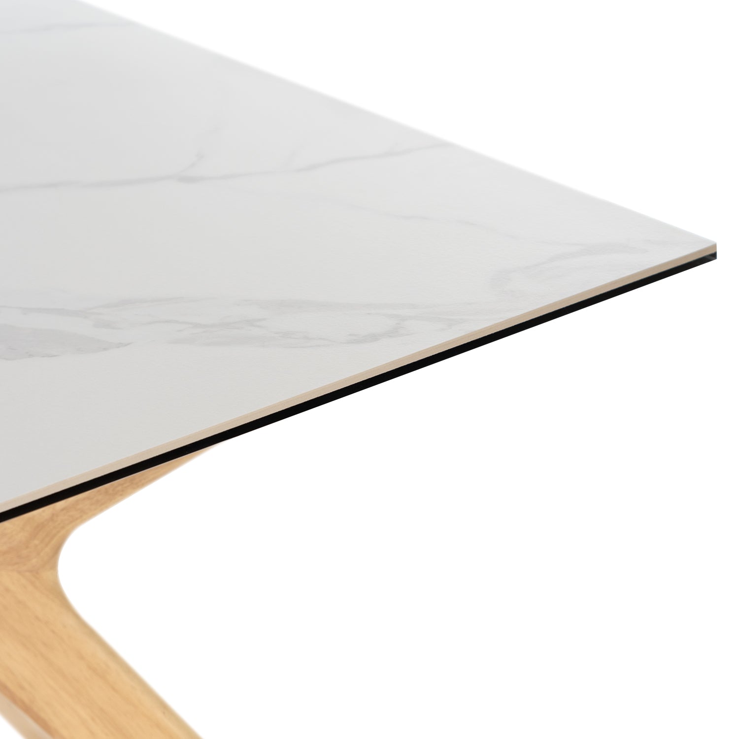 Fast bord med skiva 140x90 cm porslin (porslin 5mm + härdat glas 8mm) och träben.