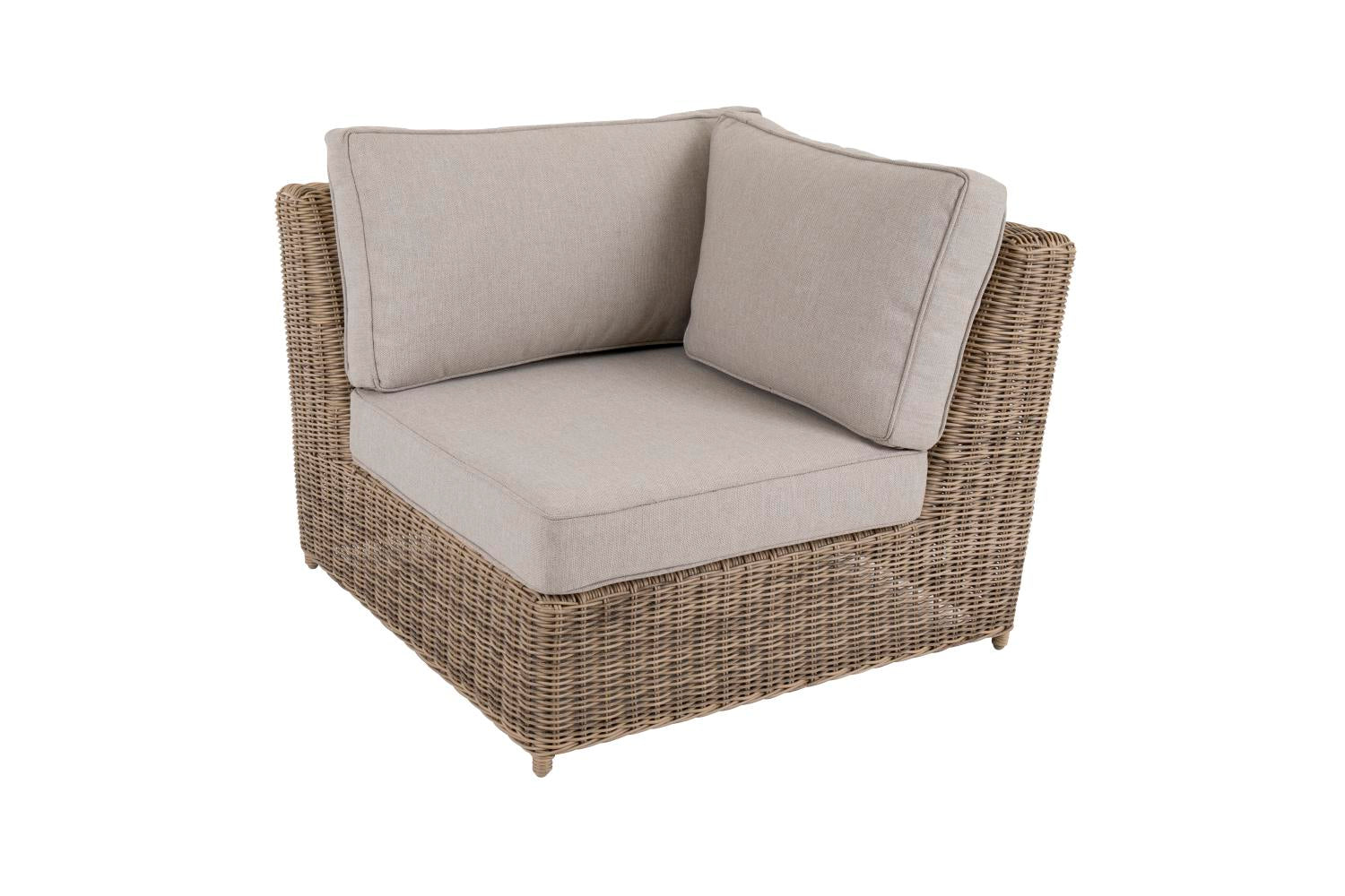 Bygg din egen perfekta Glendon-grupp. Med denna hörndel styr du kombinationen vidare. Den snygga konstrottingen passar bra in överallt med sin rustika naturfärg. Beigefärgade dynor ingår.