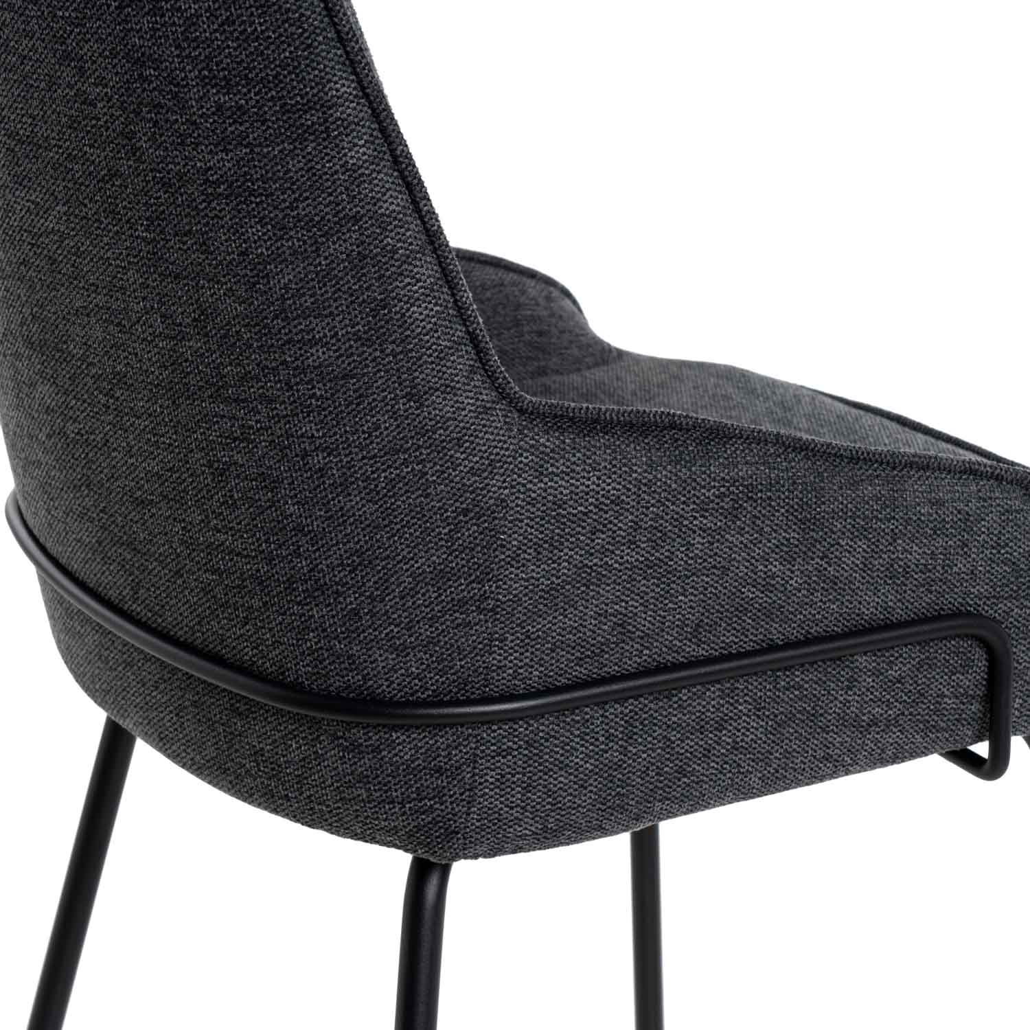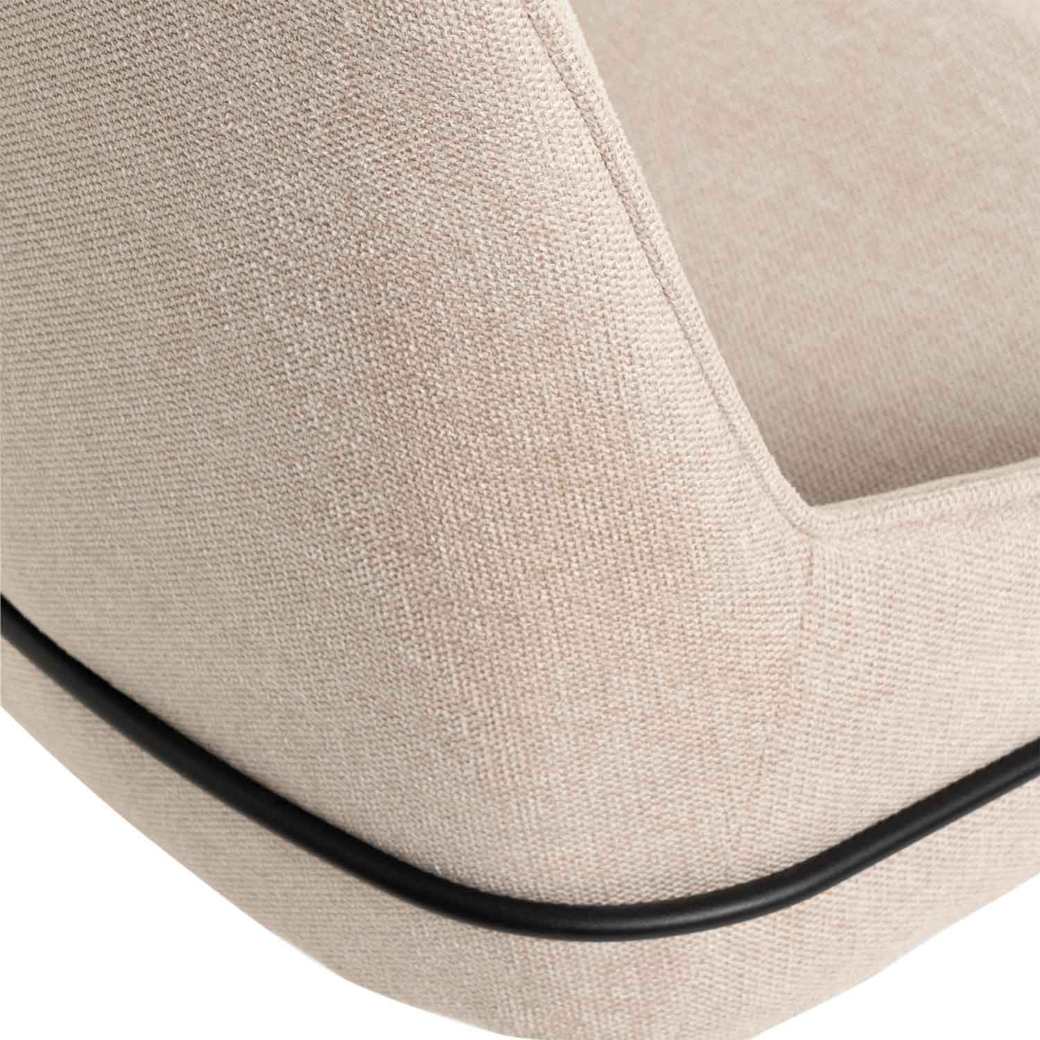 Som en designdetalj ger den svarta metallstången på baksidan av ryggstödet, liksom benen, den en sofistikerad och modern touch.