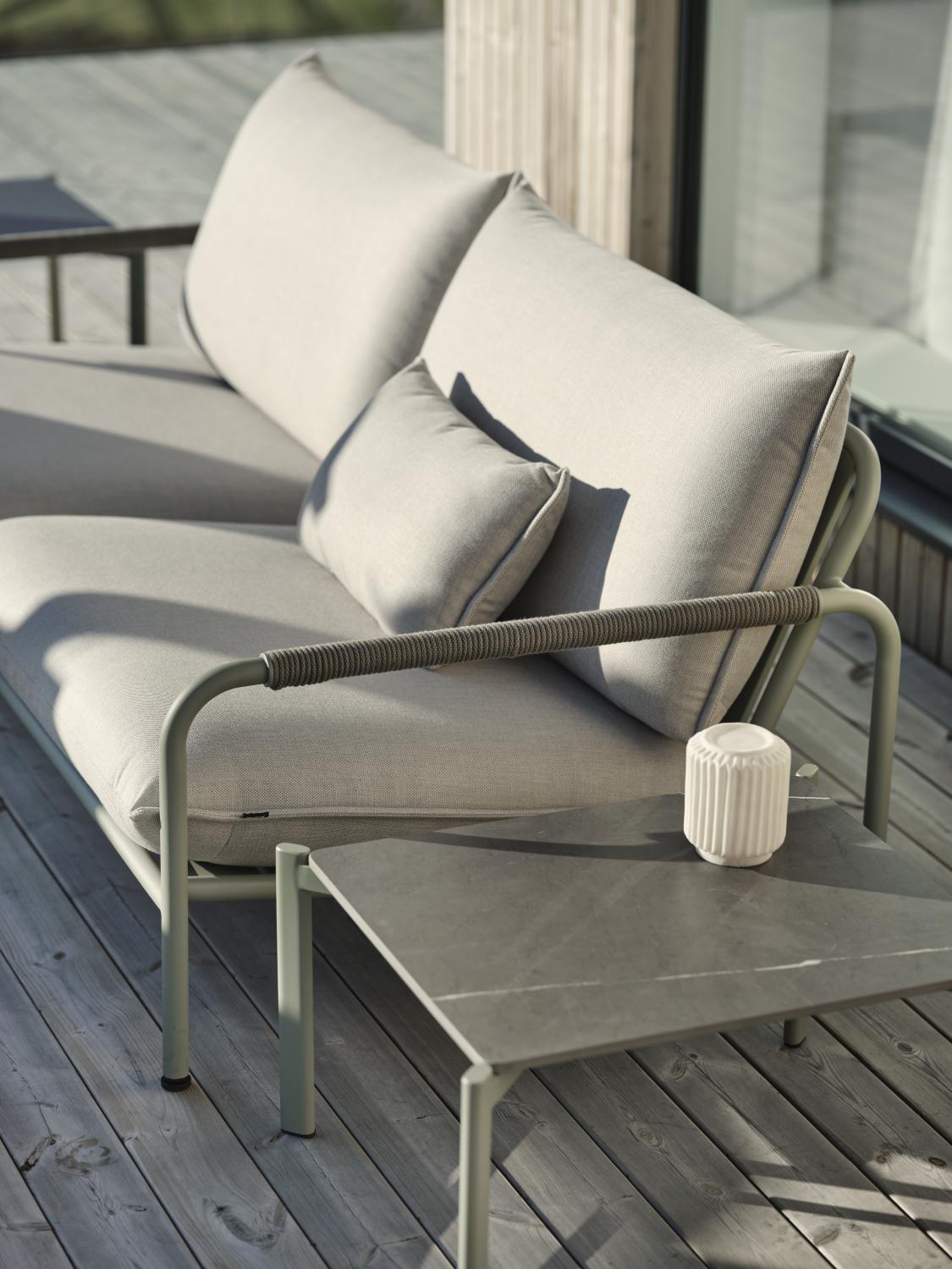 För den stora altanen, trädgården eller uteplatsen där soffgruppen verkligen får ta plats. Tack vare nutida design och bästa material skapar Hallavara en modern loungeplats i grönskan, med plats för många.