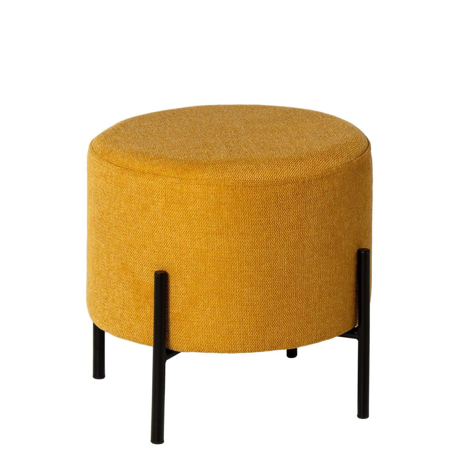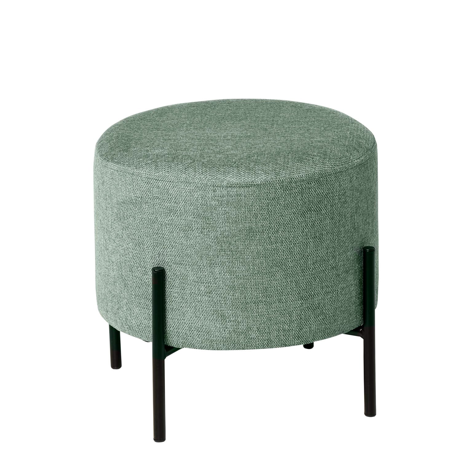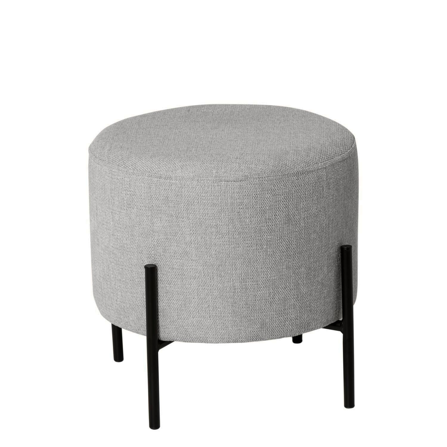 Rund puff i grått tyg och svarta metallben