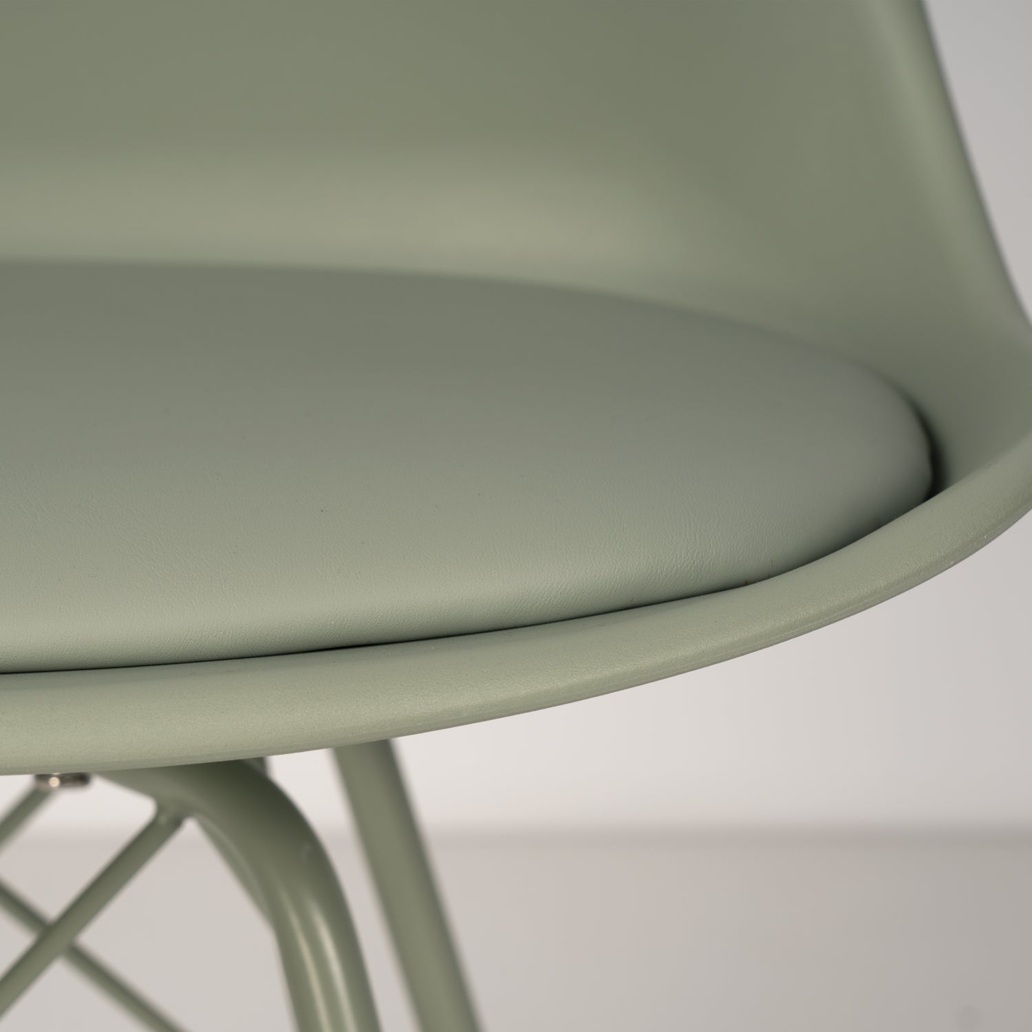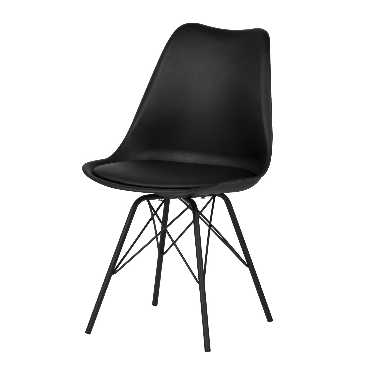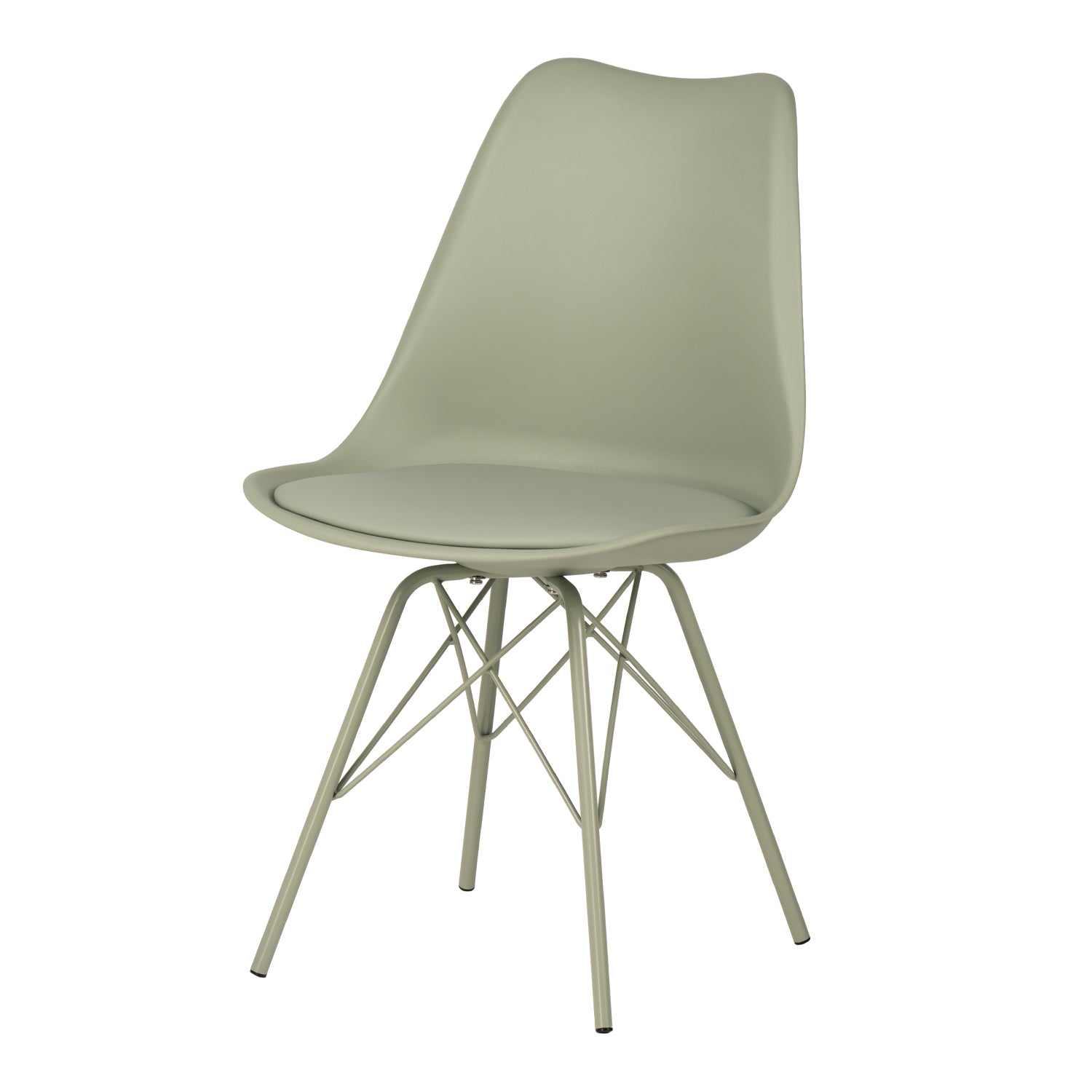 Metallbenen, med en kors och tvärs struktur, ger inte bara stabilitet utan förbättrar också stolens minimalistiska design.