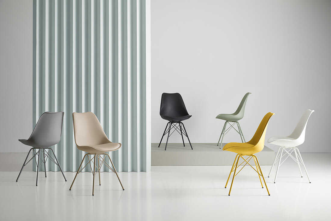 Ryggstödet, tillverkat av polypropen med en lätt ergonomisk krökning, är utformat för att främja en bekväm och naturlig hållning. Sätet, vadderat med polyuretan, ger extra komfort, vilket gör det perfekt för långvarig användning.