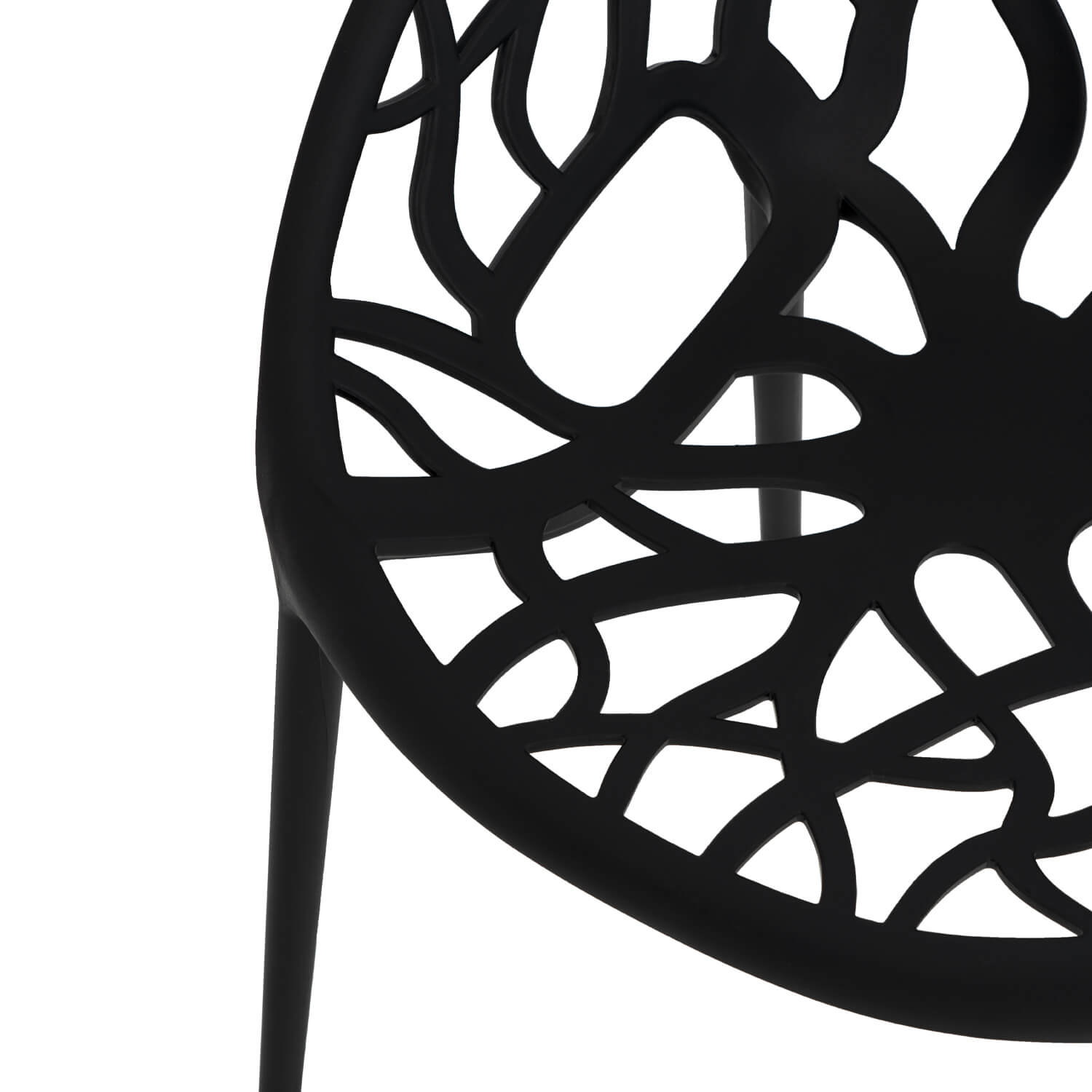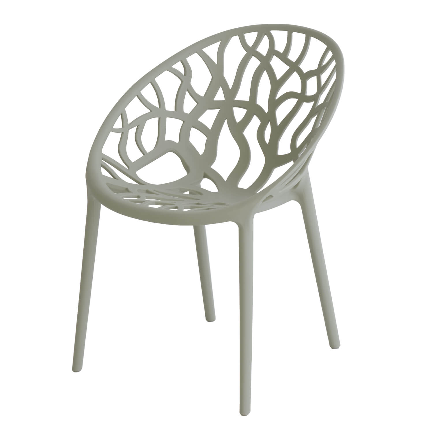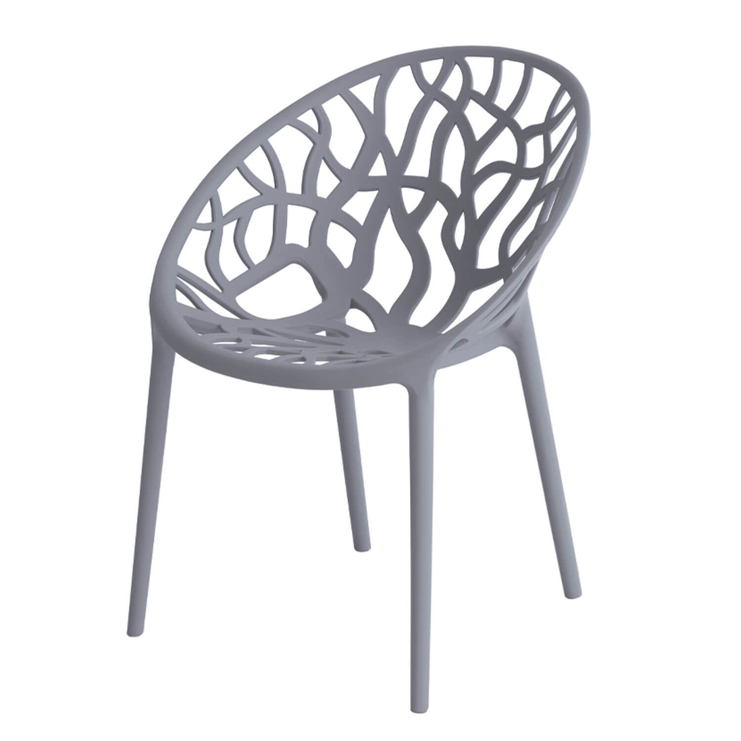 Denna stol av polypropen sticker ut för sitt ryggstöd med ett intrikat mönster som efterliknar trädens förgrenade struktur, vilket skapar en attraktiv och naturlig visuell effekt.