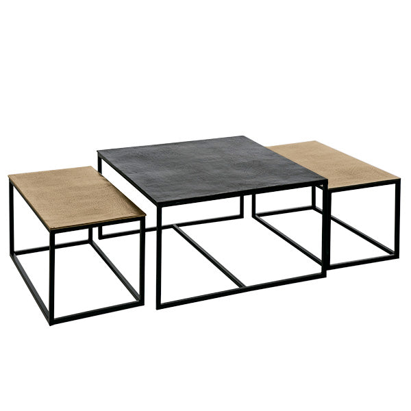Den svarta metallstrukturen tillsammans med guld- och svarta aluminiumlock ger den ett sofistikerat och unikt utseende.