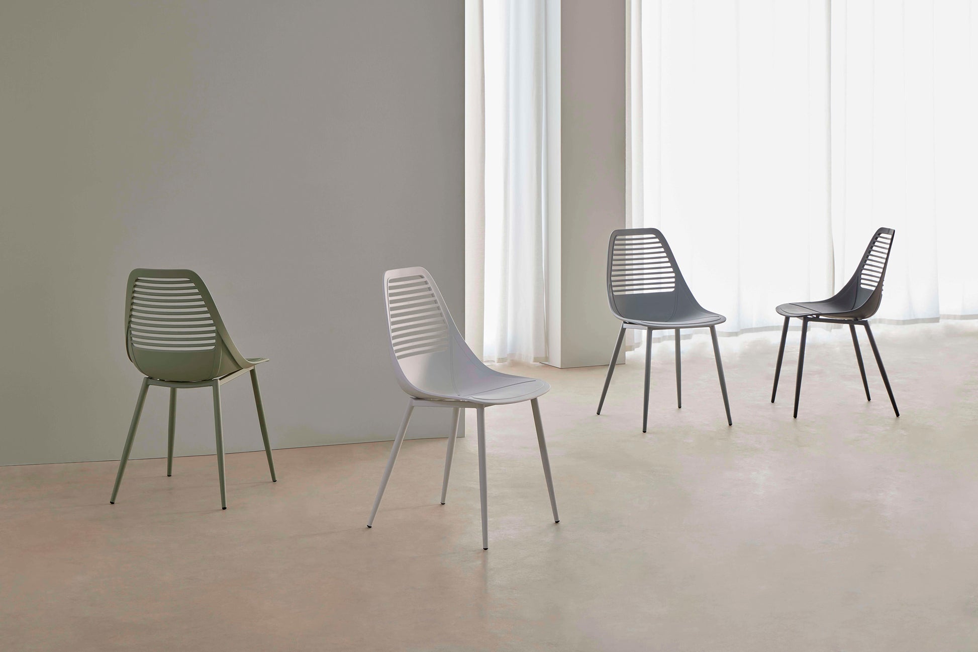 Den omslutande designen av LEIA-stolen, med ett ryggstöd och sits av polypropen i ett stycke, erbjuder exceptionell komfort.